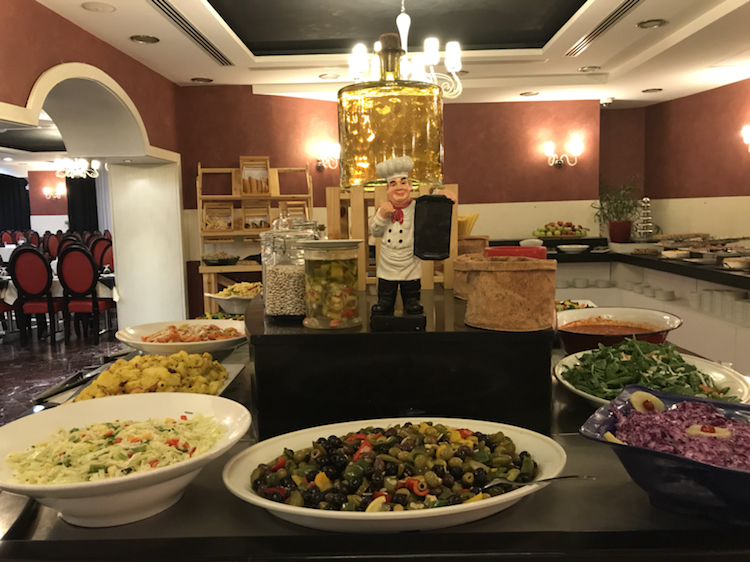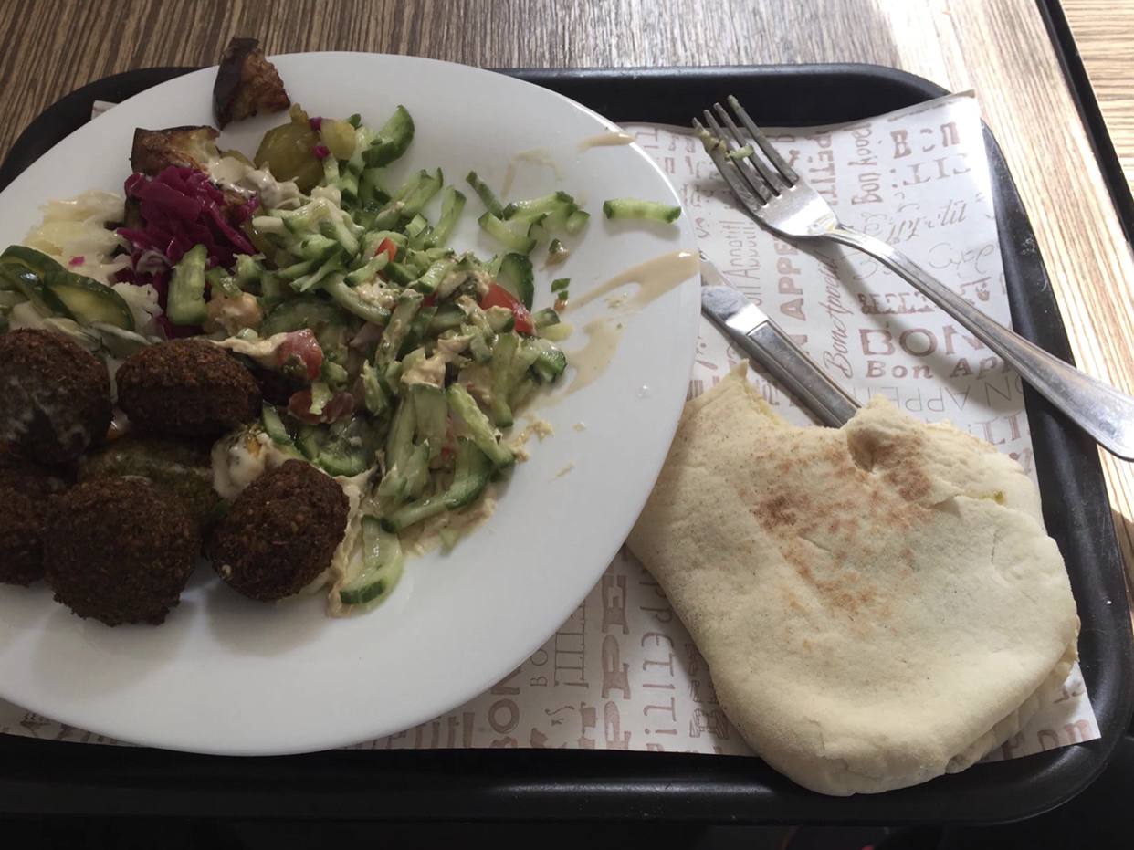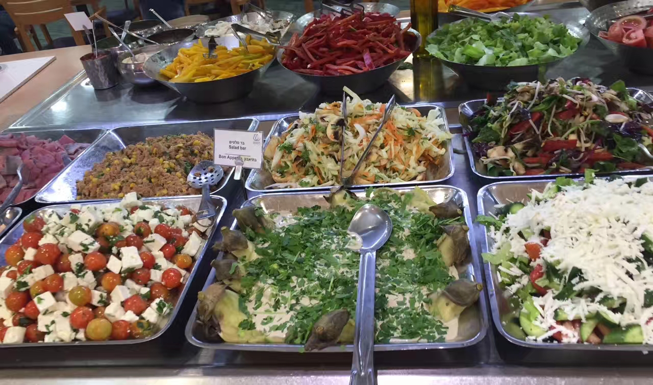 你好!我这次是从墨尔本出发随外国团去的以色列,所以大部分住的酒店都是国际酒店,早餐和晚餐都在酒店吃自助餐。中午导游会带着我们去吃当地的美食,一般来说也都是:Pita口袋面包Laffa卷饼Falafel炸蔬菜饼有素的也有鸡肉、羊肉馅的,犹太人不吃猪肉,吃来吃去的都差不多。我是随团队的,所以也没有...显示全部