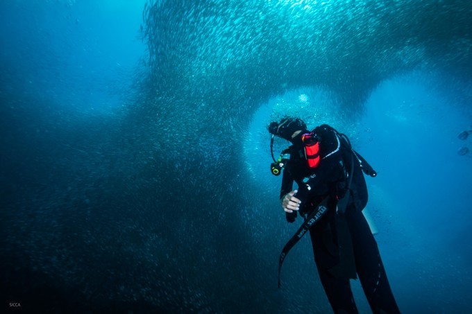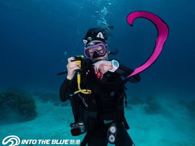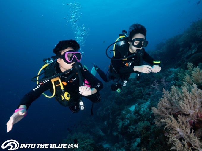 水肺潜水,潜水员自行携带水下呼吸系统所进行的潜水活动。没有潜水证的同学可以体验潜,潜导会在下水前教你一些基本的潜水技能,耳压平衡,面镜排水等等,还包括一些在水下用的手势,一般都在水下10米左右的地方。