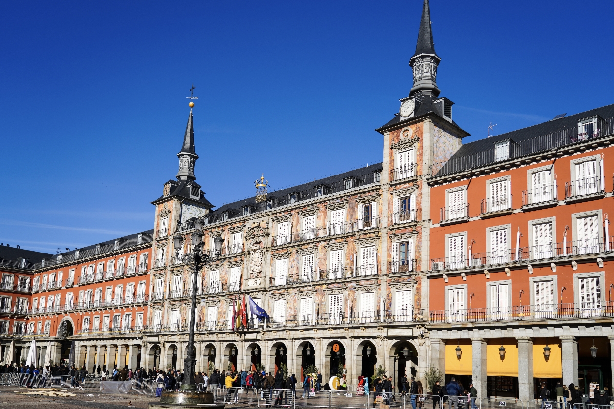 作为首都,马德里广场尤其之多。这些广场里,最吸引游客的,是老城中心的马约尔广场。在西班牙语里,马约尔不是谁的名字,就是“大”“主要”的意思,所以翻译过来就是大广场、主广场,够简单粗暴吧。由于同名同姓的广场太多,西班牙人在说XX广场时,都会加上定语,比如马德里的马约尔广场、托莱多的太阳门广场、塞维利亚的西班牙广场……