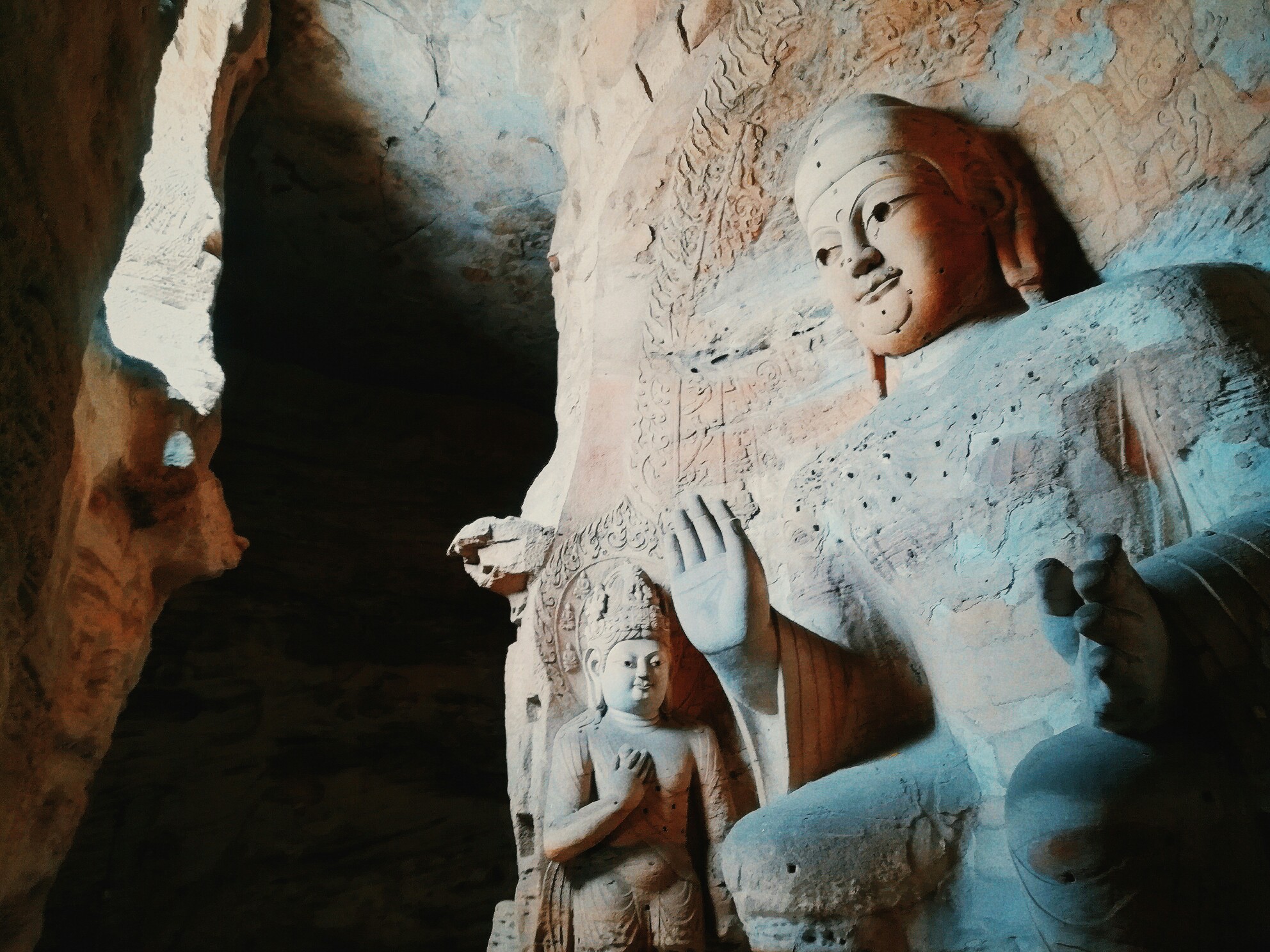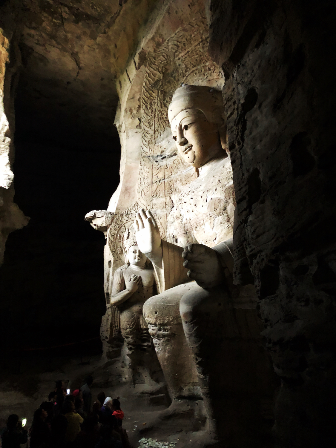 从开凿年代来讲,云冈石窟凿于北魏初年,景区内有余秋雨书写碑文中国从此走向大唐,龙门石窟是北魏迁都洛阳后始建,其中大部分为唐朝凿建,是云冈石窟的延续。从佛像形态来说,云冈石窟佛像形态较龙门石窟更高大雄健一些,更符合北方人特征,云冈石窟相对柔和。从保存情况来看,龙门石窟保存状态不如云冈石窟,云冈石窟佛像极为精美。从大众名气来看,云冈却不如龙门。