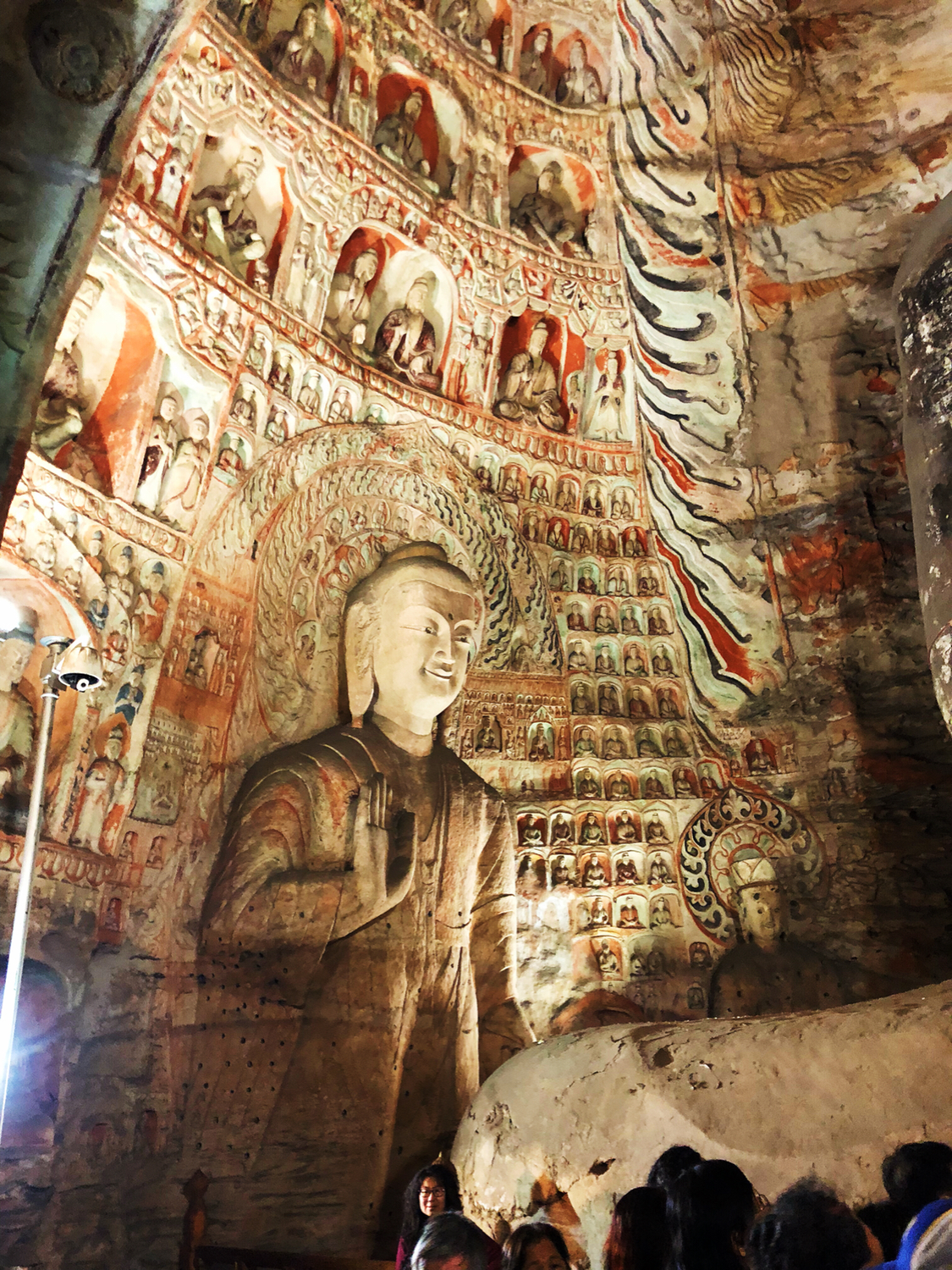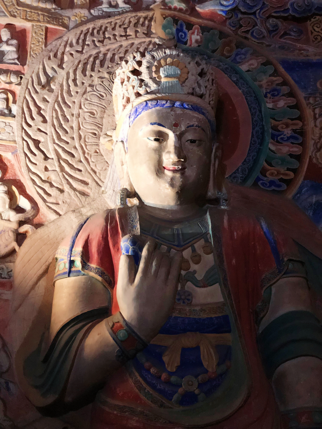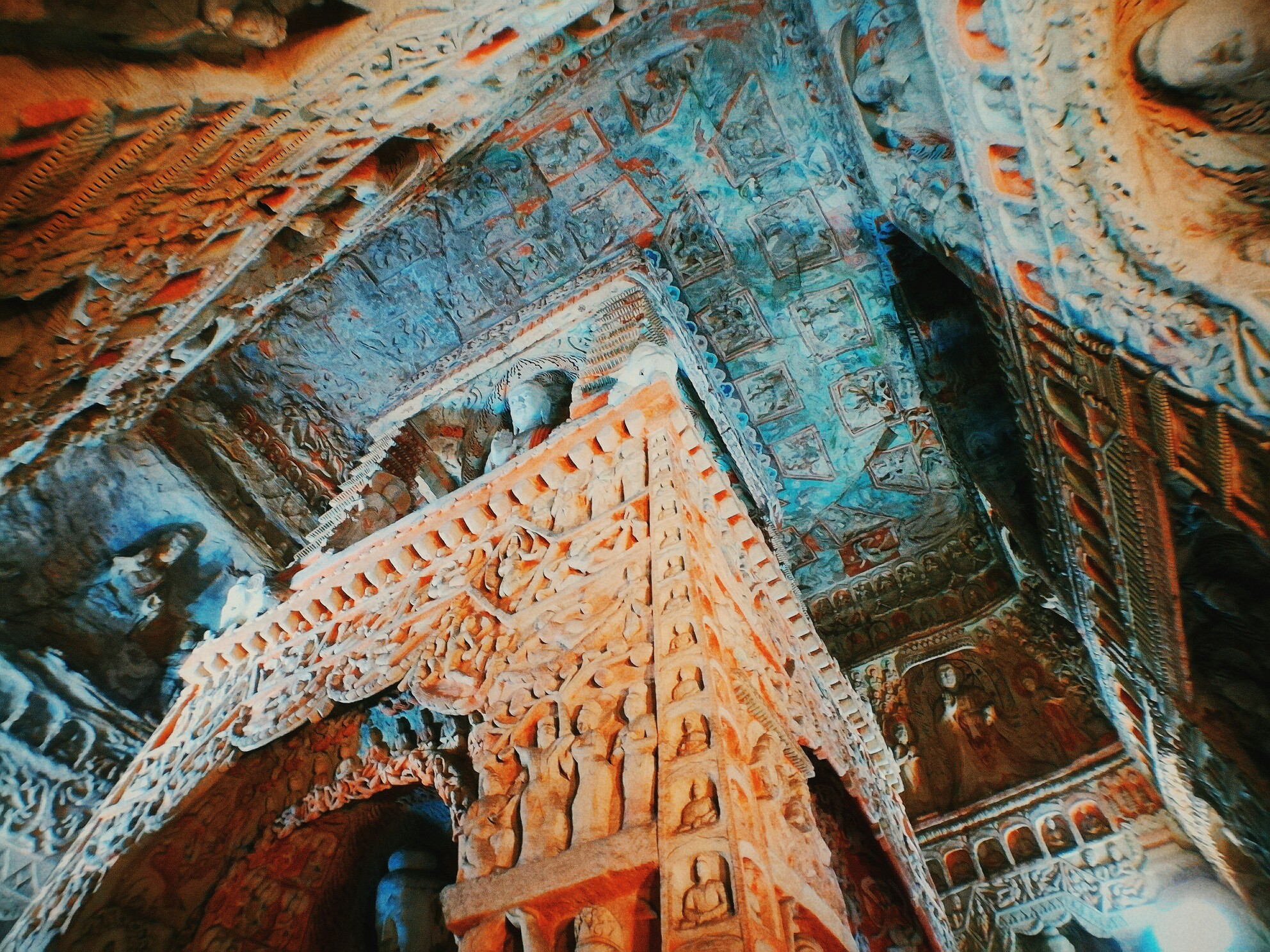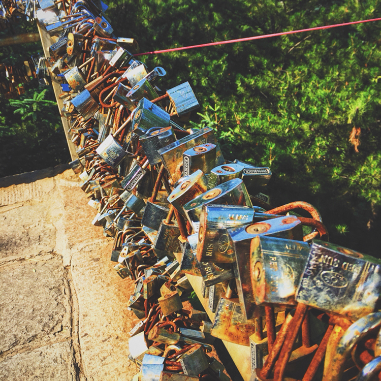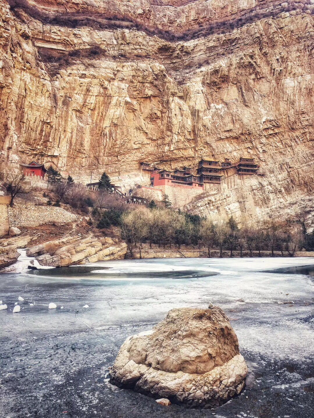 除此之外,我还很喜欢悬空寺。修建在悬崖峭壁之上,看过后不得不让人感叹古人的智慧。整个寺庙漂浮于悬崖之上,部分嵌入石壁内,部分用几根木柱支撑着。从下往上看,就像一幅壁画。站在寺庙上往下看,仿佛身处于悬崖边上,寺庙走道很窄,一次仅能一人通过,栏杆到人膝盖处,踩在木板上,听着嘎吱嘎吱的声音,可以说是步步惊心。寺庙楼檐脚都挂有铜铃,风过铜铃响,让人内心又很平静。
