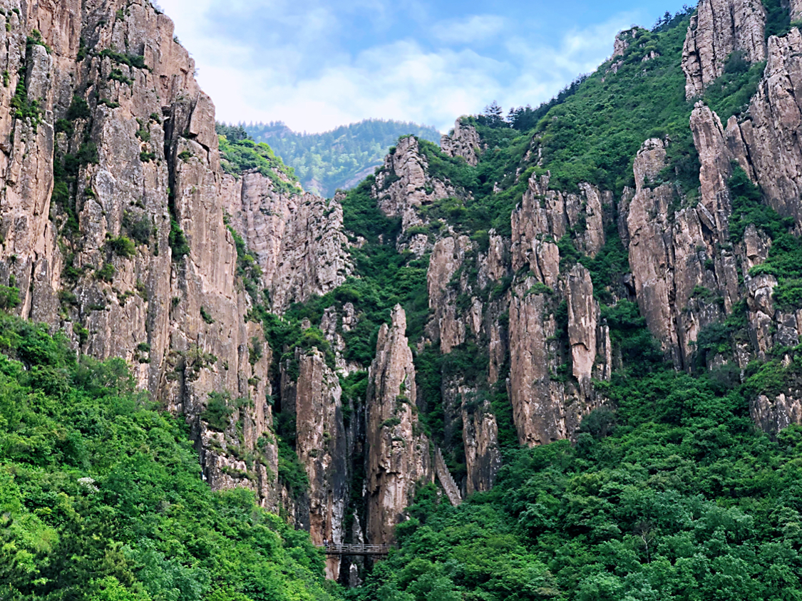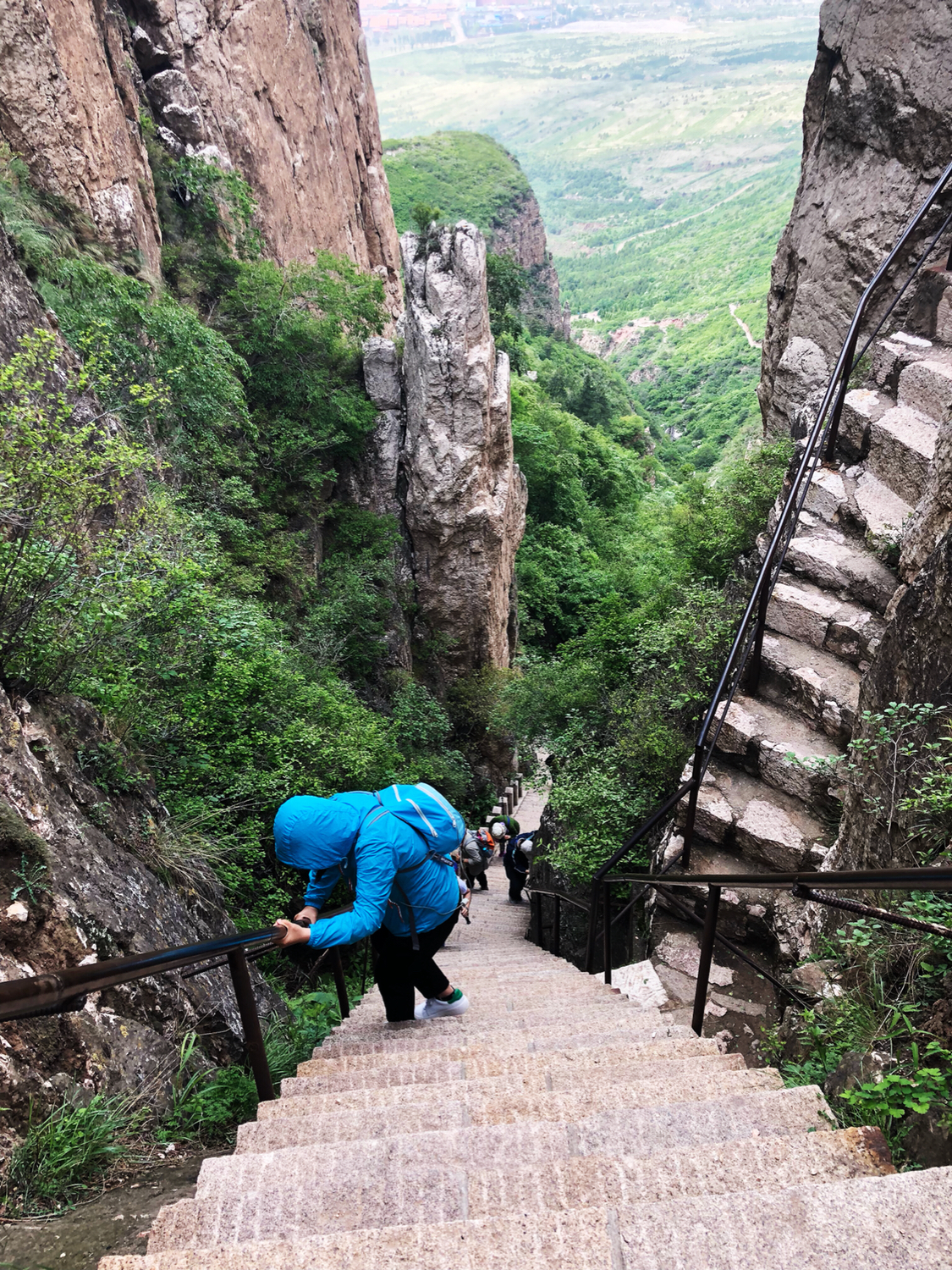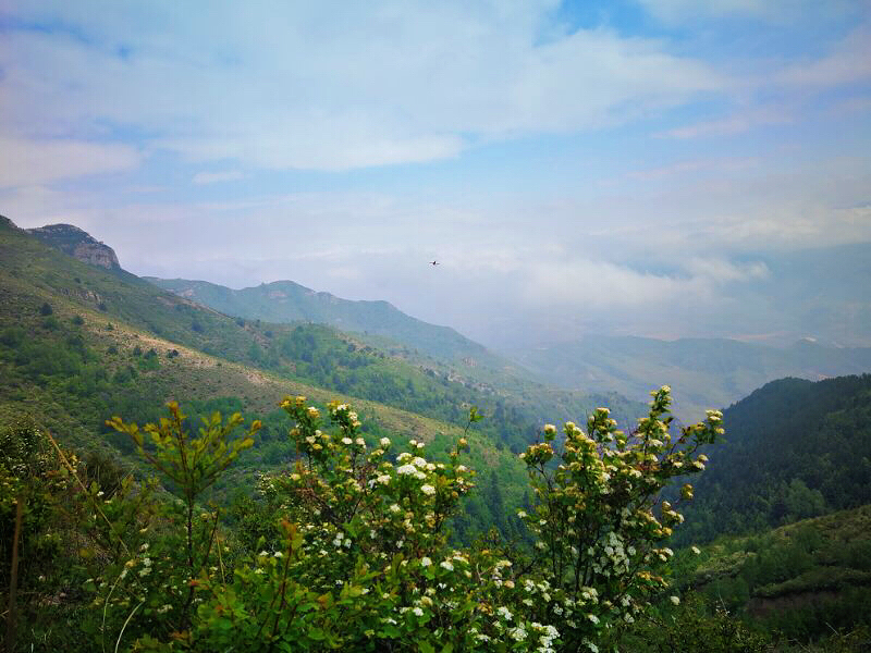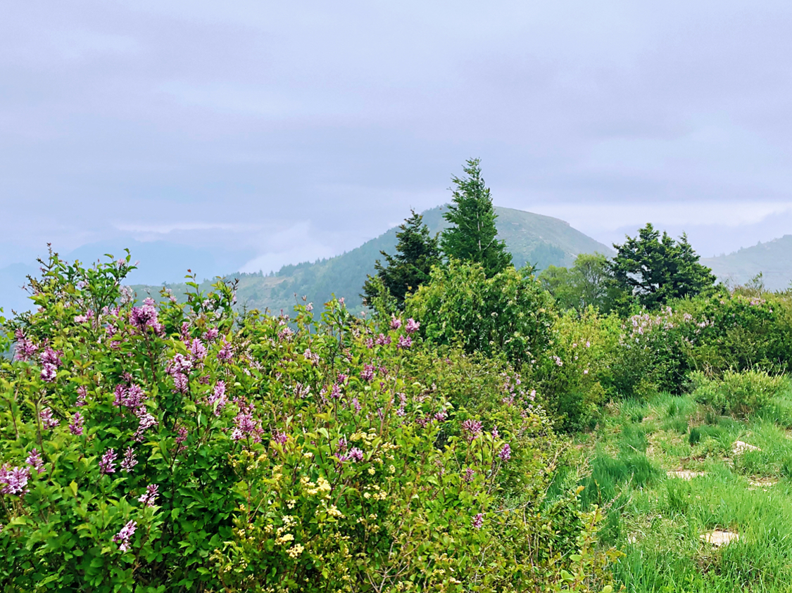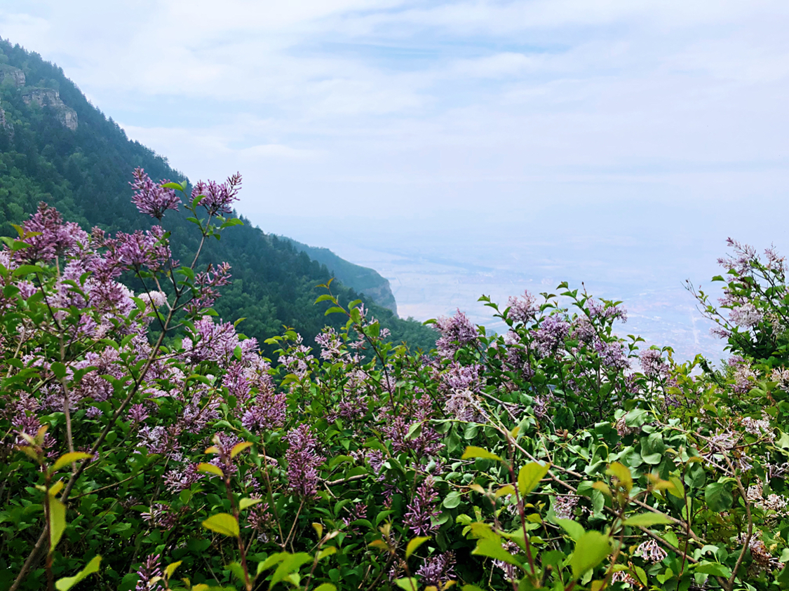 是五岳之中唯一的4A景点,有点尴尬哈,登山前没有报很大希望,但是,对!但是它的后山很秀美,登顶后沿着石路一路向下就到了后山。五月的后山郁郁葱葱,丁香盛开,颇有点南
