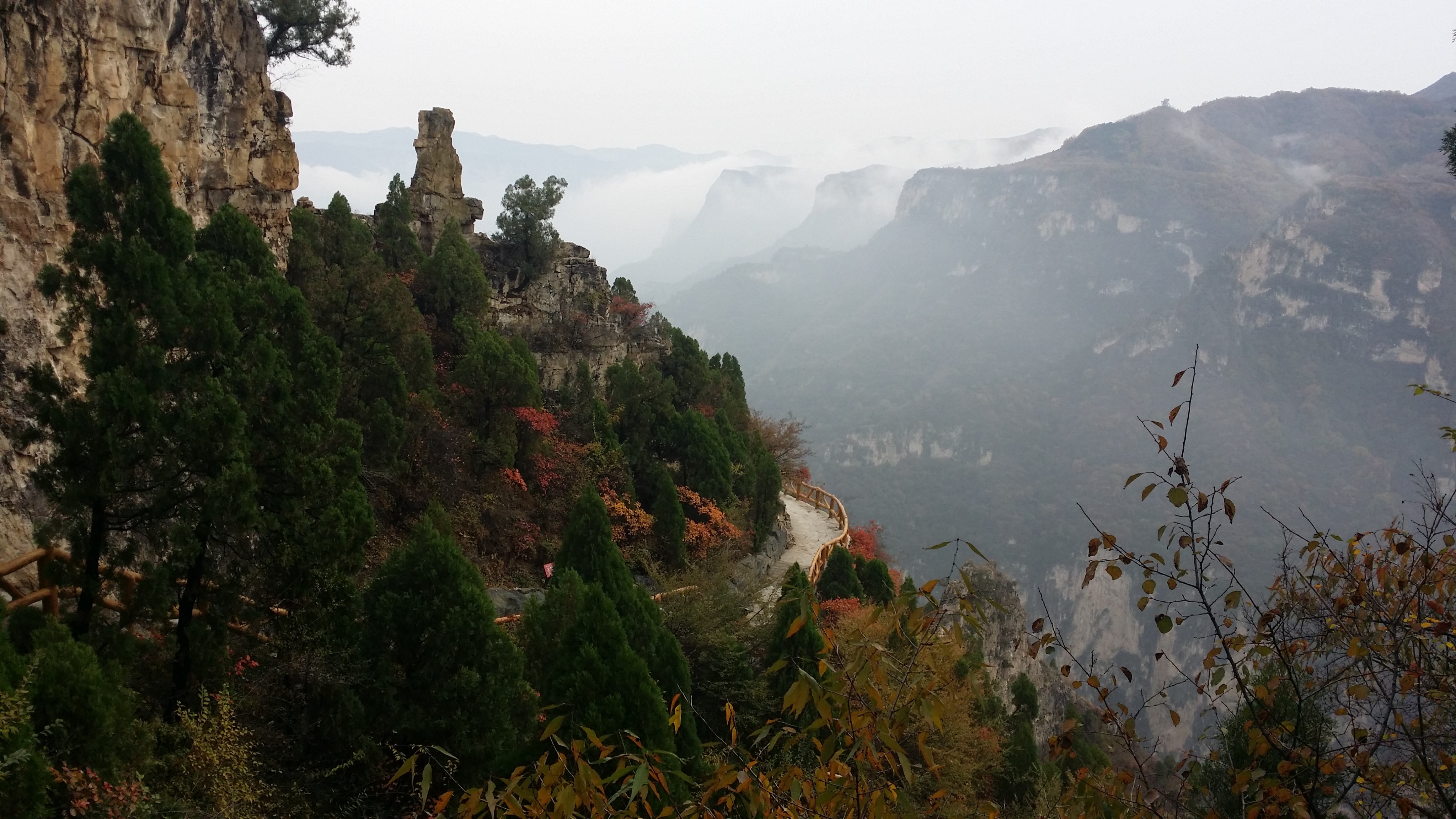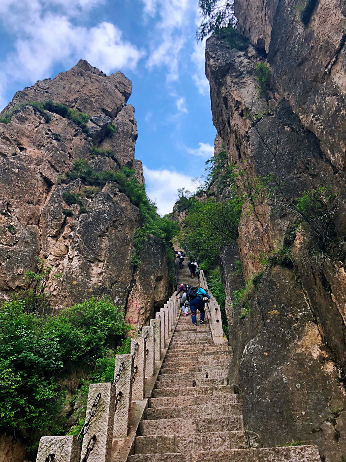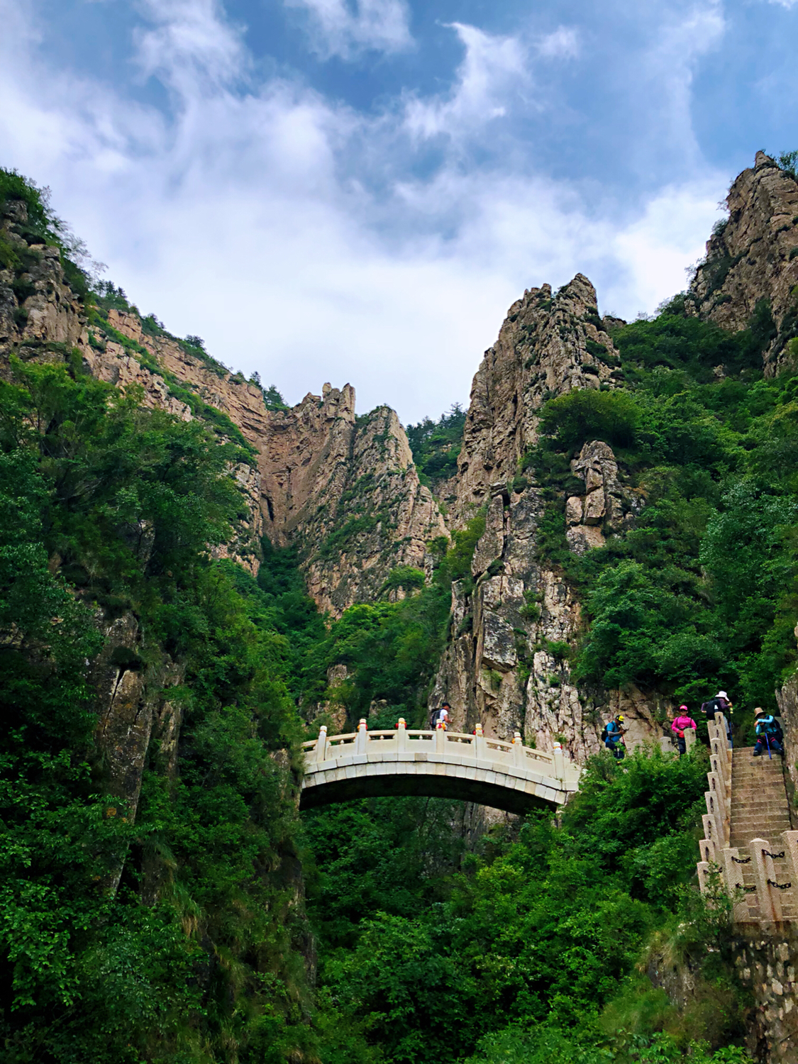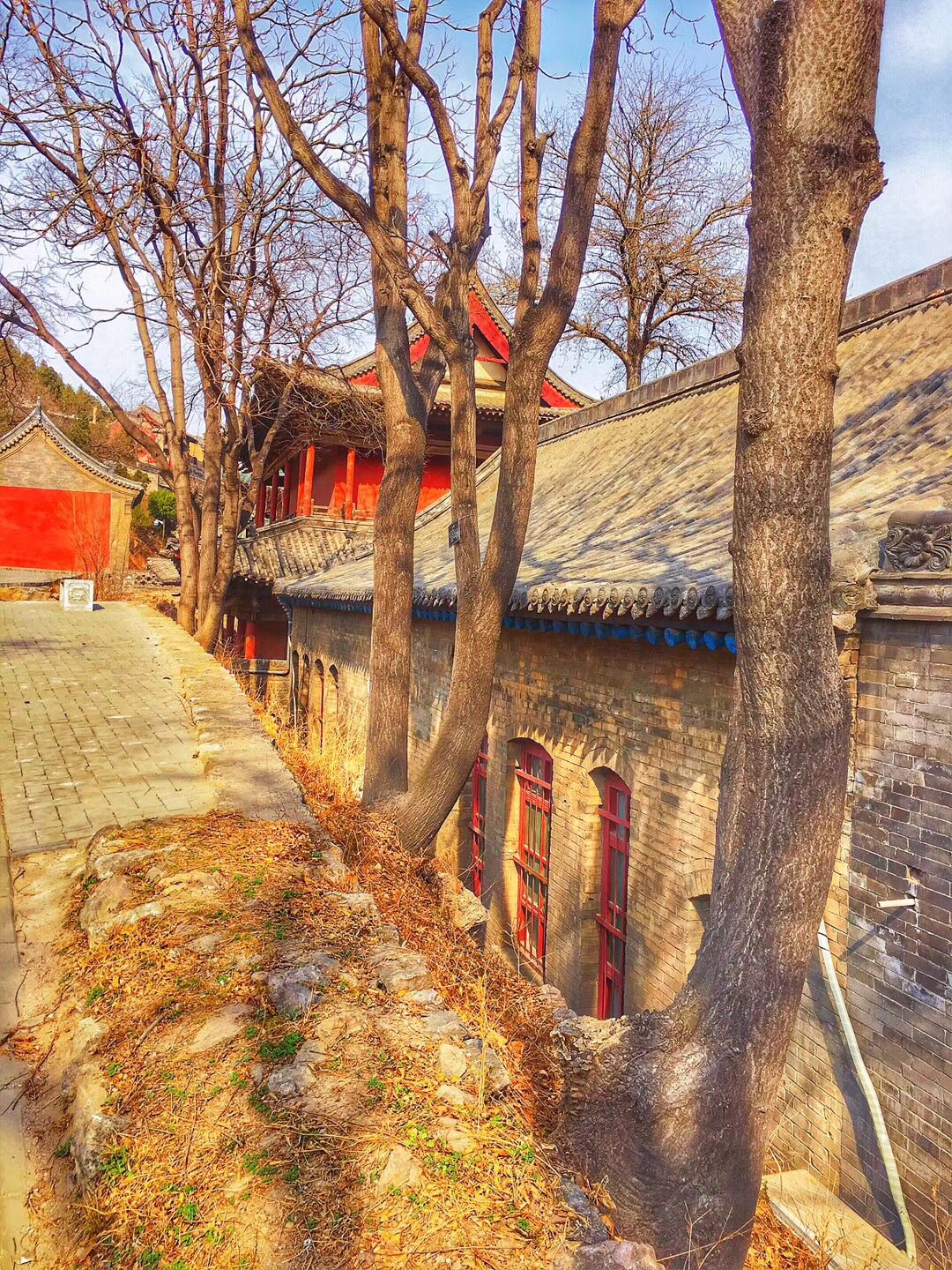 是五岳之中唯一的4A景点,有点尴尬哈,登山前没有报很大希望,但是,对!但是它的后山很秀美,登顶后沿着石路一路向下就到了后山。五月的后山郁郁葱葱,丁香盛开,颇有点南