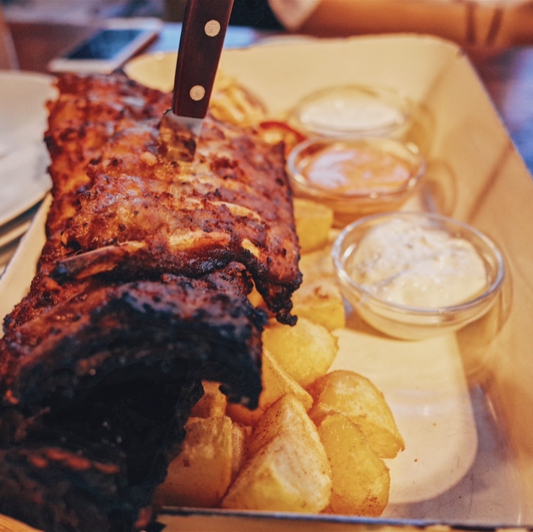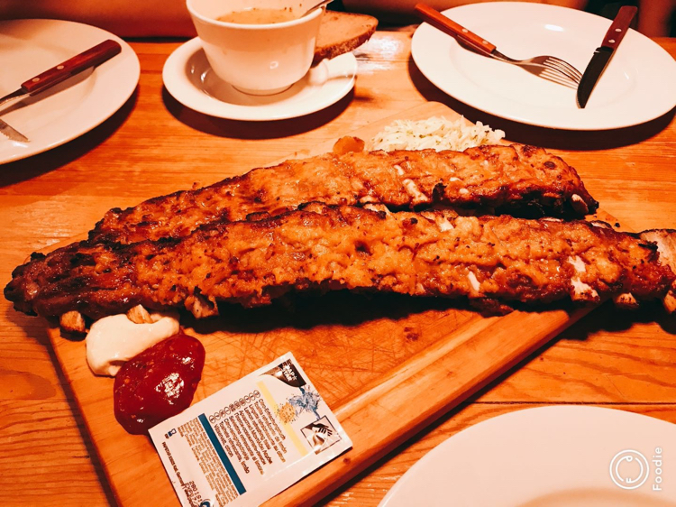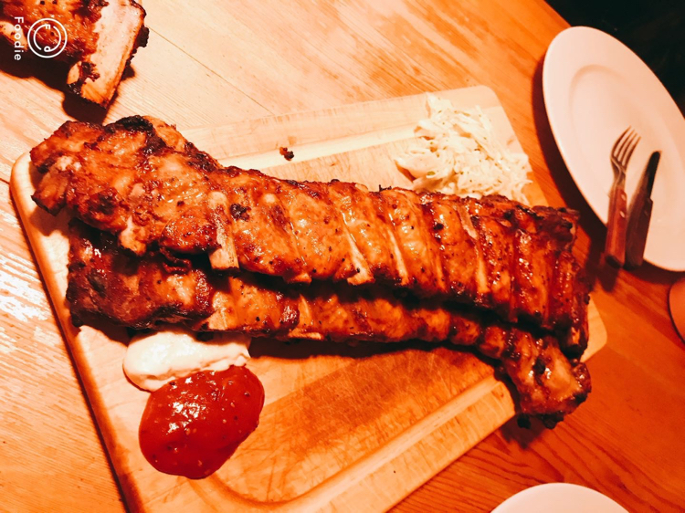 Ribs of Vienna的烤猪排,传说中1米长的猪排,烤的恰到好处,肥瘦相宜,性价比也还不错。