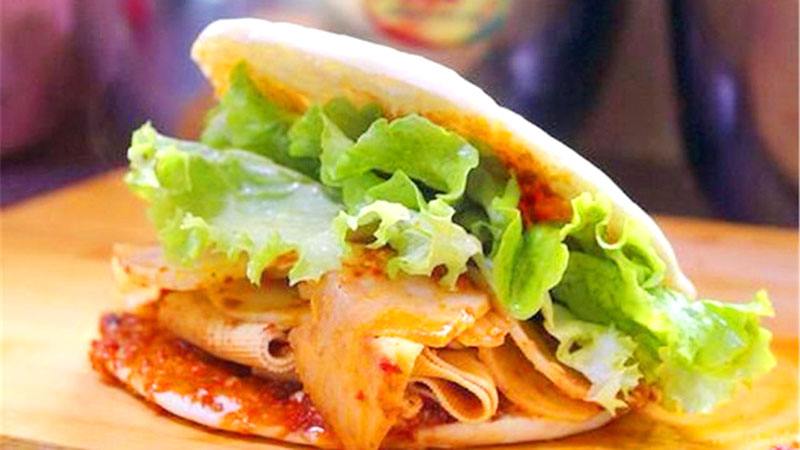 烤肉肉夹馍:常见于夜市摊位上,很多夜市老板都是会准备“荷叶饼”或者是白吉馍来供大家选择,考上几串肉,并拢放在馍里面一扯、一拉、一放、一口,喝上一口啤酒,别提多美了,这是夜市最常见的吃法之一了。
