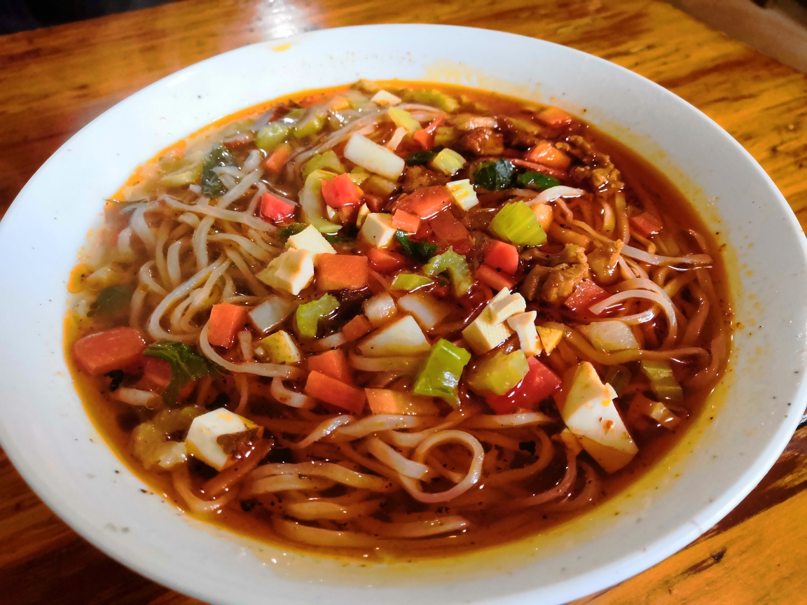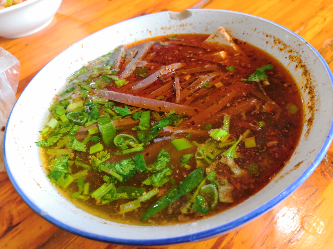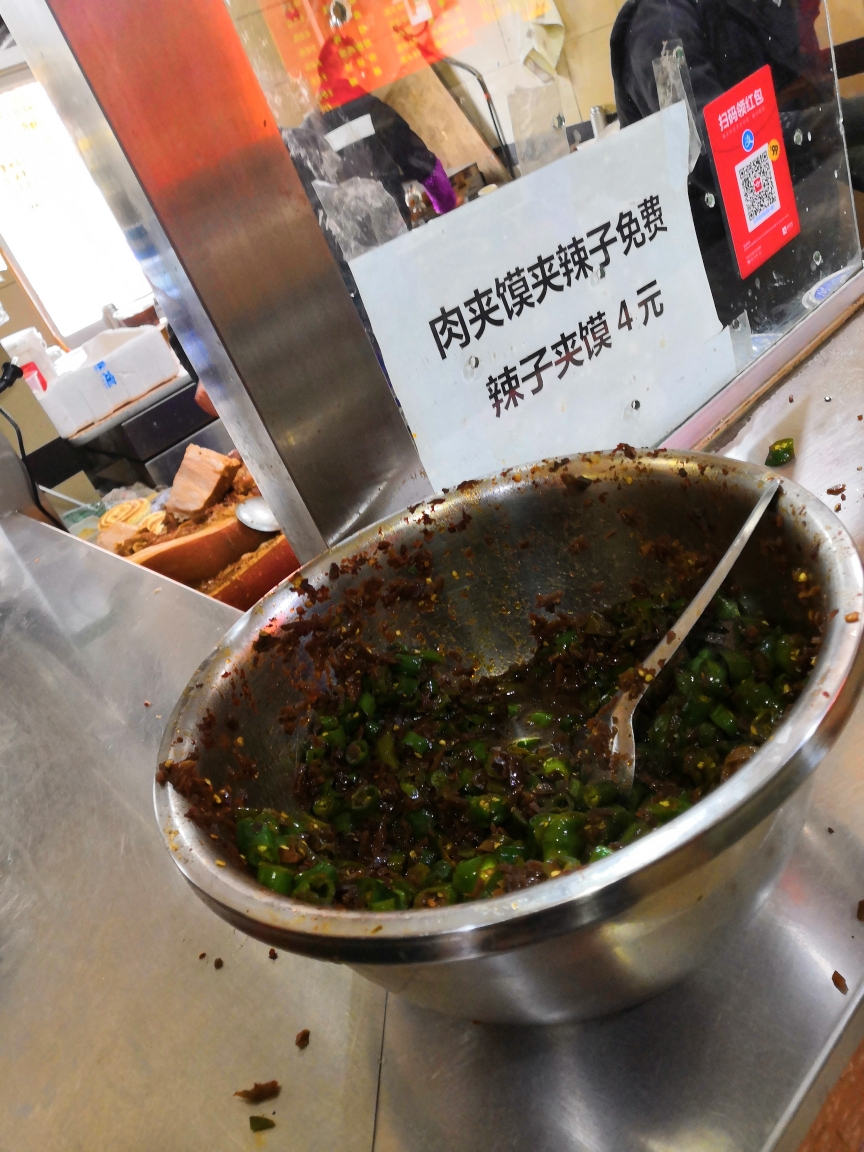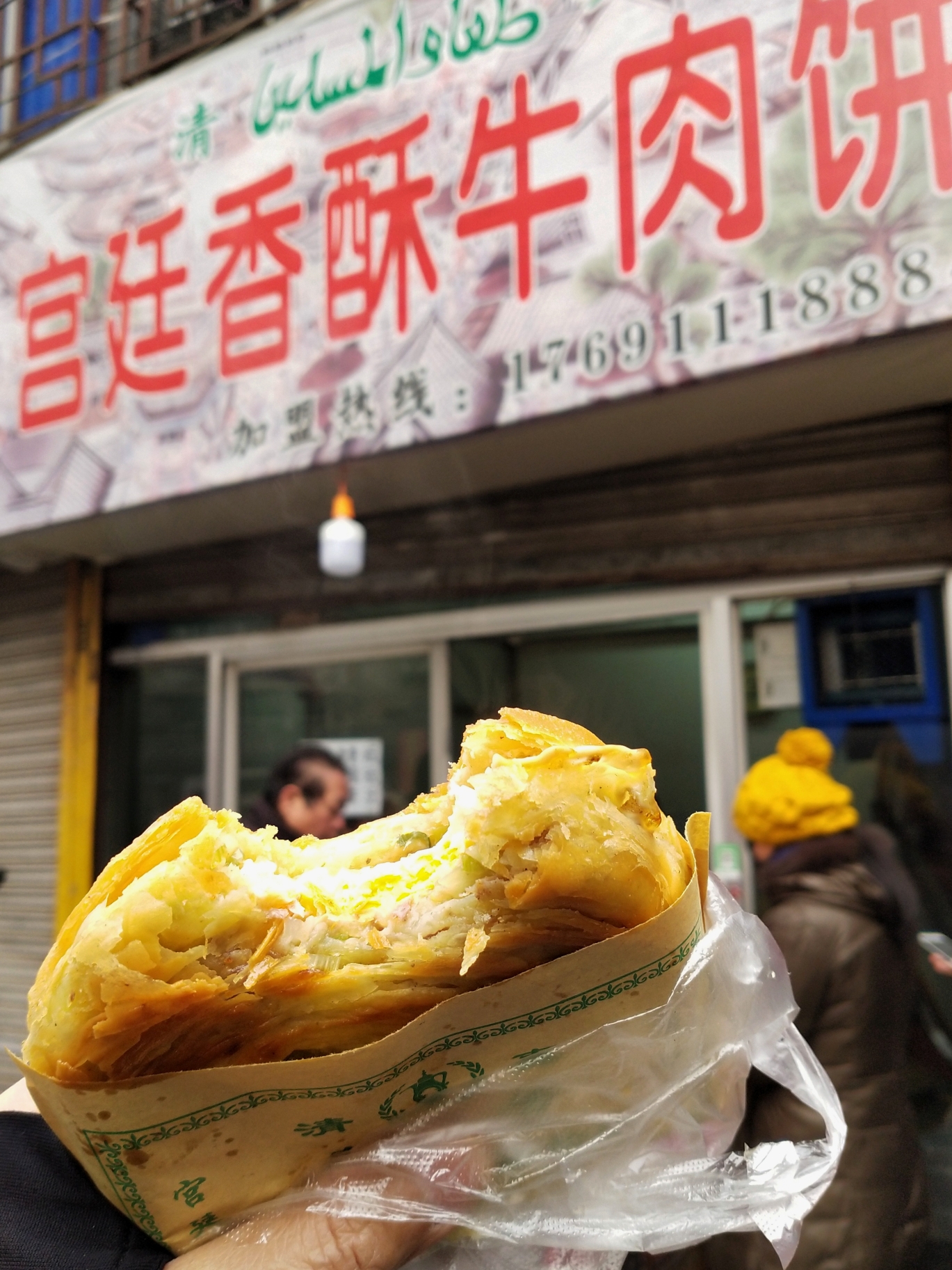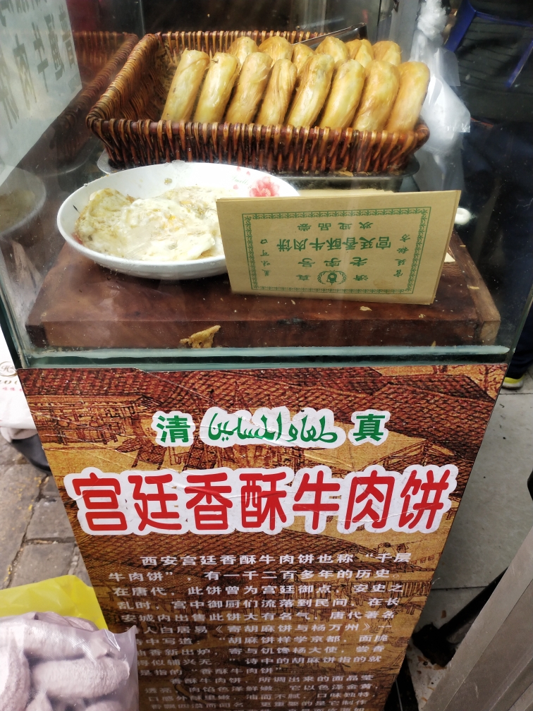 著名网红打卡点,回民街上最多,腊牛肉夹馍,冷肉配热馍,配上店里面的胡辣汤,美滴很~