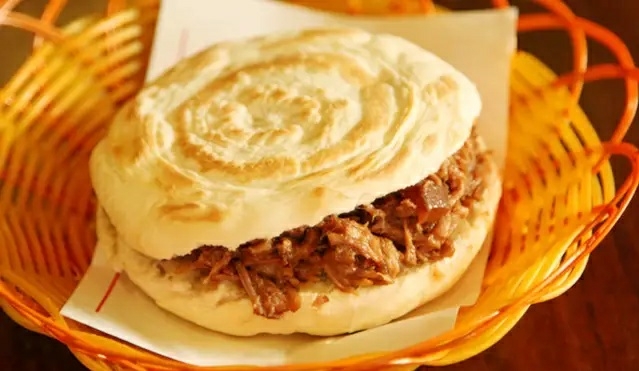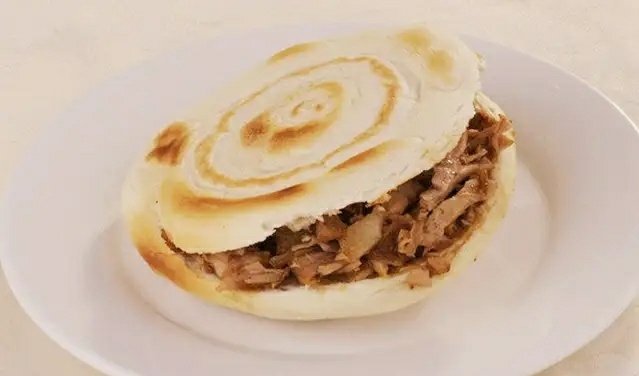 肉夹馍,而最近几年创新,研发出了岐山肉夹馍,其实用的面饼和