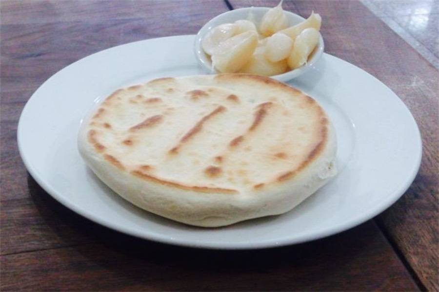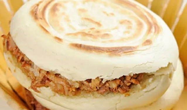 肉夹馍的白吉馍是一样的,只不过里面的内馅发生了变化,里面是加的岐山臊子面里面的那种臊子。