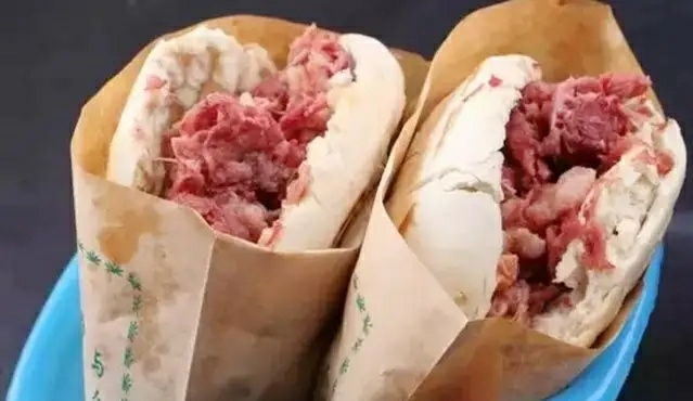腊牛肉肉夹馍:在回坊比较常见,也就是