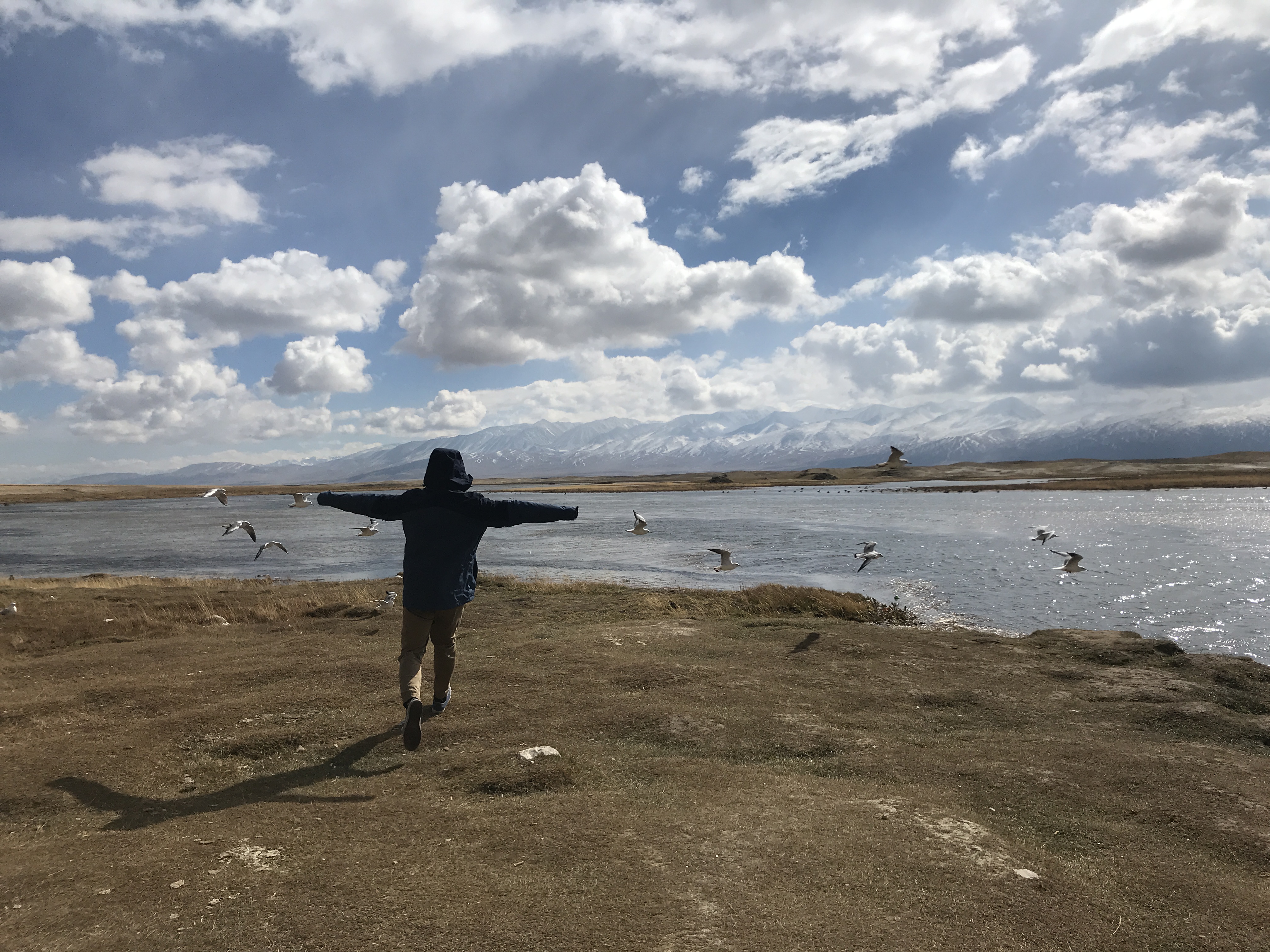 在赛里木湖湖边的芦草中坐下,耳畔只剩下呼呼的风声和水声划过,身上只有阵阵的山风掠过,眼里只有蓝天、白云、群山、绿草、鲜花 和美 丽到无法形容的湖水,心都被融化了