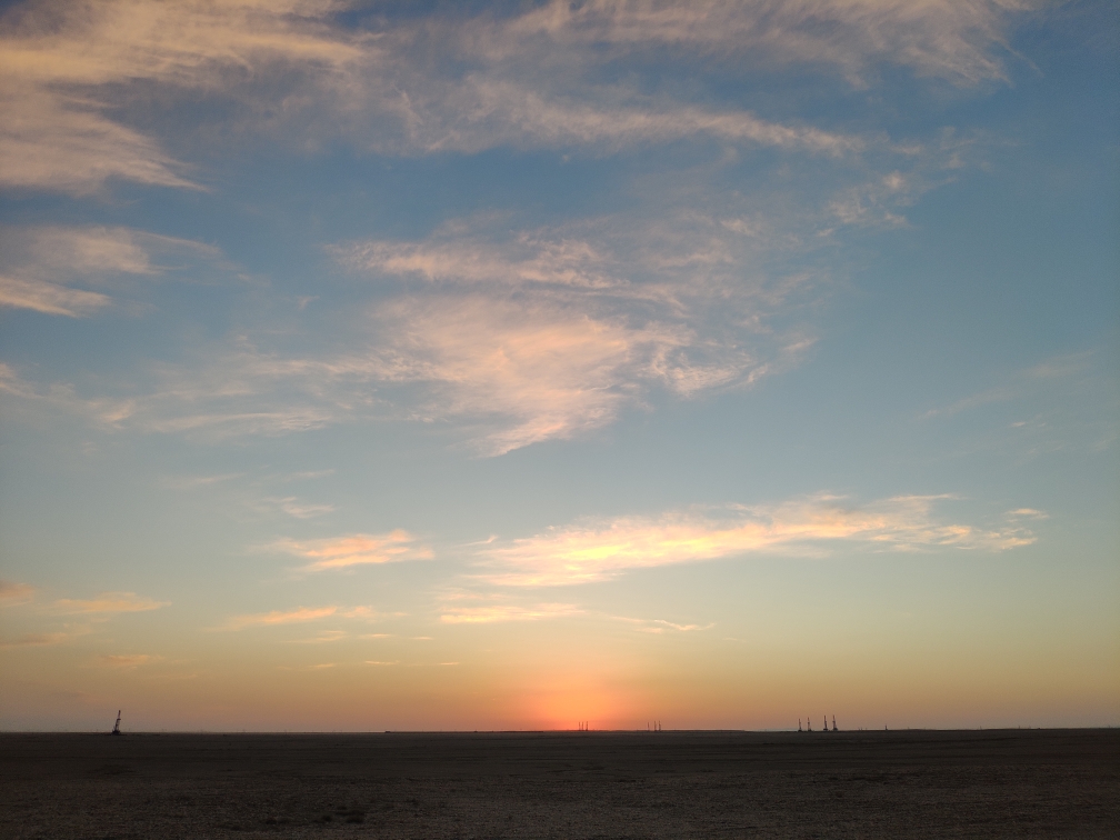 以80公里行驶的大客车,在一段将近两个小时的路程里,除了公路和偶尔对面来的车,完全见不到一点人类文明的迹象。唯一的人造物,是一个供旅客下来抽根烟放泡水的简易红砖公厕。