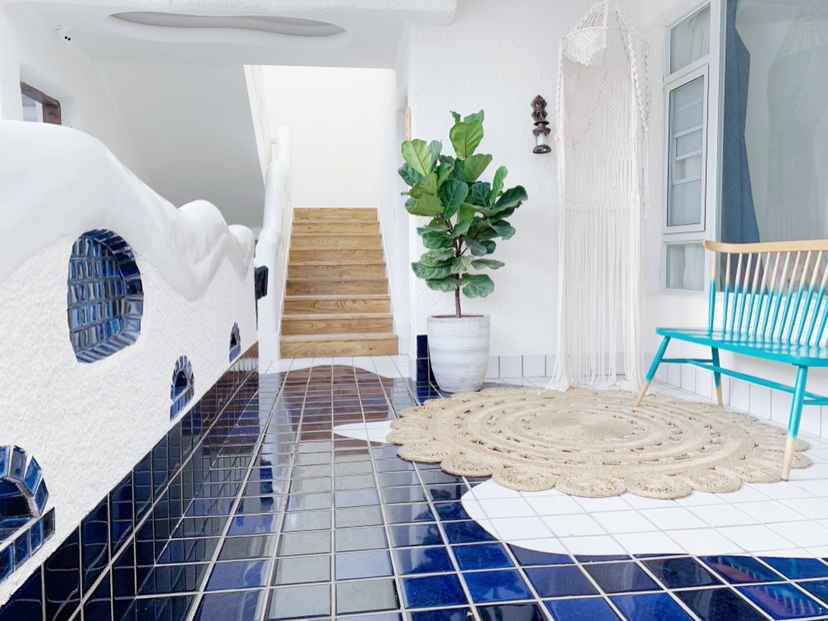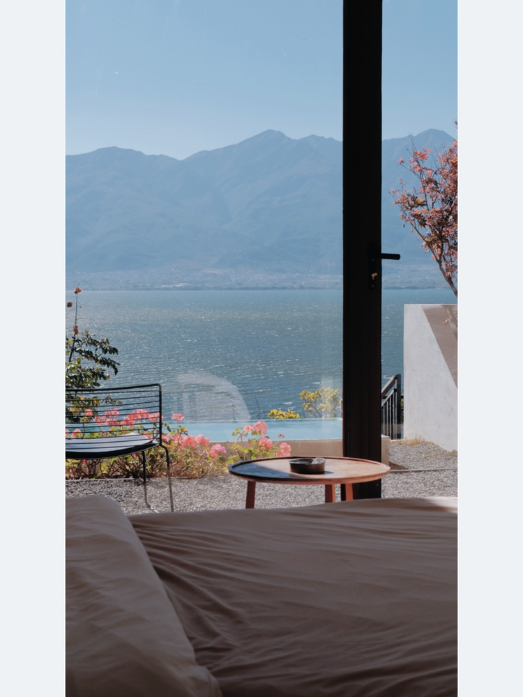 再转转院子,曲径通幽,光影交错,一步一景,一闭眼一睁眼,宽阔的海景涌入眼帘。