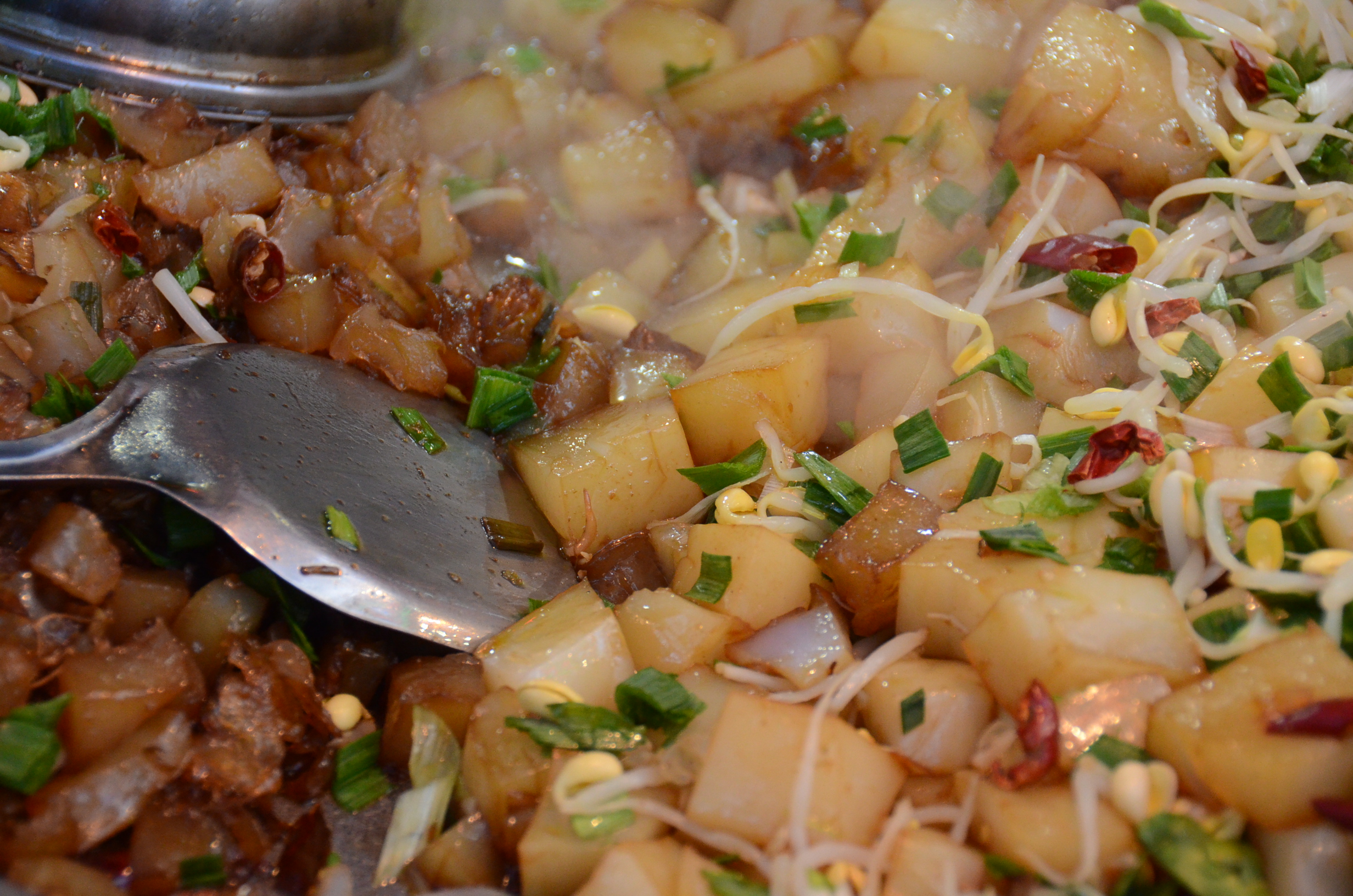 BiángBiáng面宽似裤带。面煮熟后,放入炒过的土豆、胡萝卜、豆腐丁等配菜,加一大勺油泼辣子就很有味道。端一碗趁热吃,像个老陕一样“大碗吃面”,感受劲道的口感。一般会有大小碗之分,小碗12-16元,大碗15-19元。
