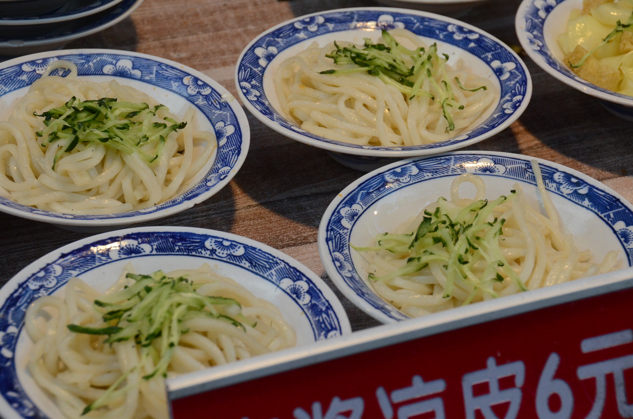 秦镇凉皮是当中最出名的,至今已有2000余年历史。调好的凉皮呈红色,与黄瓜丝等配菜用酱醋汁充分凉拌,再撒一些香菜和蒜泥,泼上辣子,吃起来弹牙又筋道。除此之外,还有