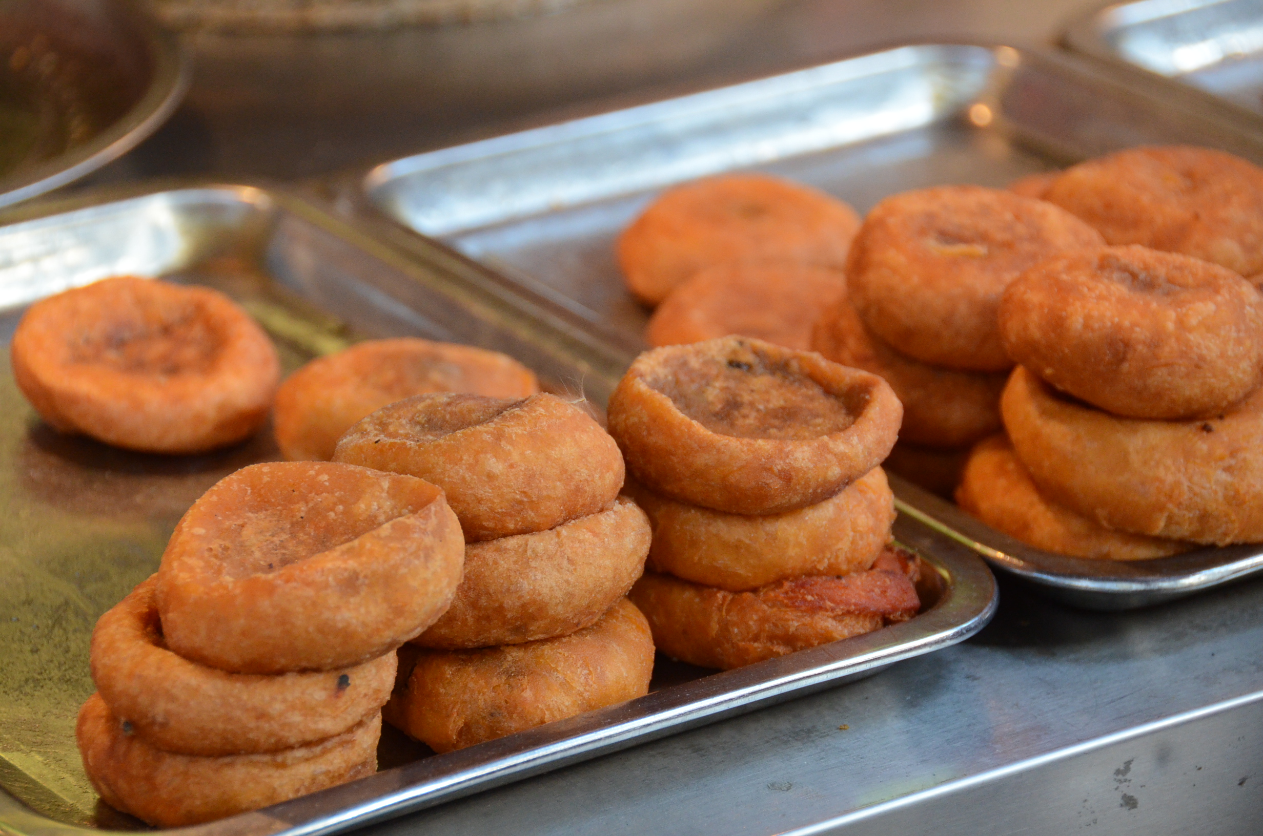 外皮用潼县特产火晶柿子为主料,碎核桃仁、黄桂酱做馅料,包好后放入特制的锅煎,等到柿子饼两面都呈金黄色时,就能拿出来品尝。要趁热吃,柿饼糯糯的,很适合做饭后小甜点。经典黄桂味的一般是3元钱,其他馅料的3-5元不等。