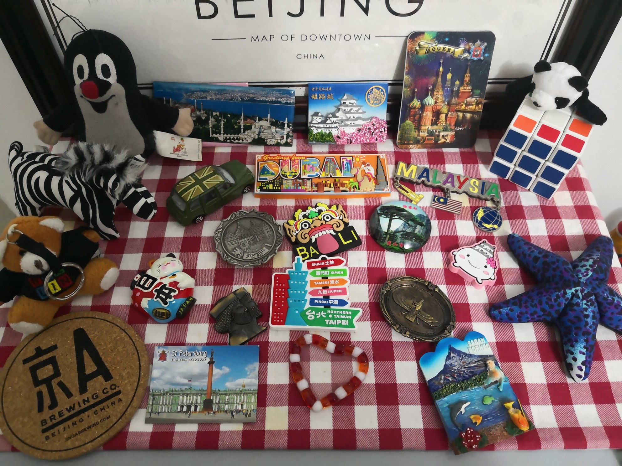 以前会买一些摆件,后开觉得多了也是浪费,现在还是会看着买,当然买能用的,或者冰箱贴。冰箱贴不喜欢贴,摆着,部分如下伊朗带回来的靠垫,家里一个办公室一个买了糖果,然后盒子空下来用来装了其他糖果航空公司发的东西用来装文具里面的记号笔是在剑桥买的。杯子喽,很好的纪念品,泰国买的。不过最多还是拍下好照...显示全部