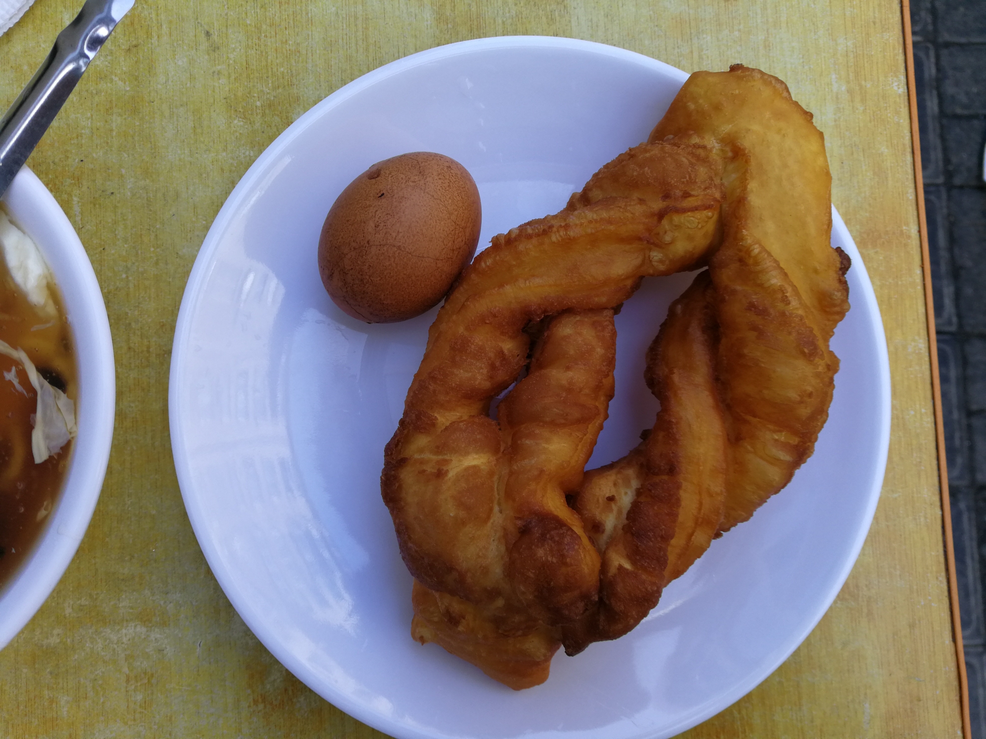 如果说圣罗巴是高大上,第二是街边摊:秀菊豆腐脑,是一个早点摊,在二经街早市上,海鲜豆腐脑和蜜果都不错,价格便宜。吃早点的多是周围的街坊四邻,吃完早点顺便买买菜,体验不错。