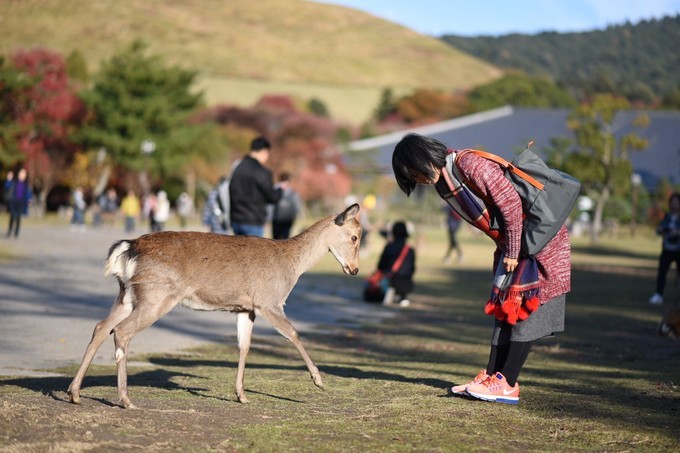 关于奈良的小鹿,真是看不厌,提供一些喂食技巧,就能优雅地完成喂食!1.千万不要只引诱不给食,既然都买了为啥不给食呢,人家当然生气啊。已经看过很多被鹿追得大叫,甚至看过被撕破裙子的;2.要尽量选择雌性或小鹿喂食,他们会比较温柔,公鹿相对较凶,会咬扯衣服包包或者顶你。当然这只是大部分,...显示全部