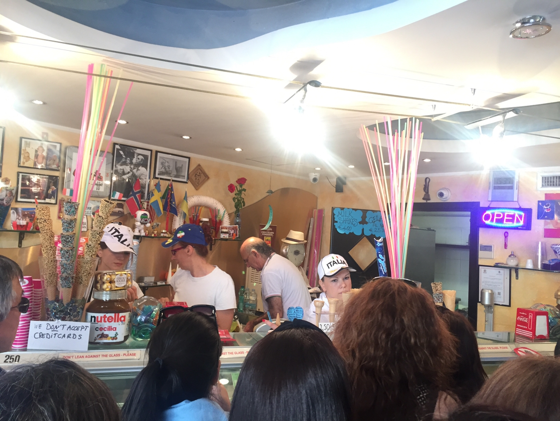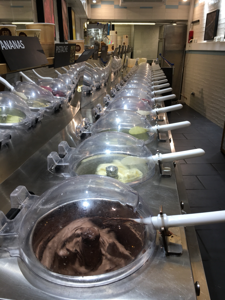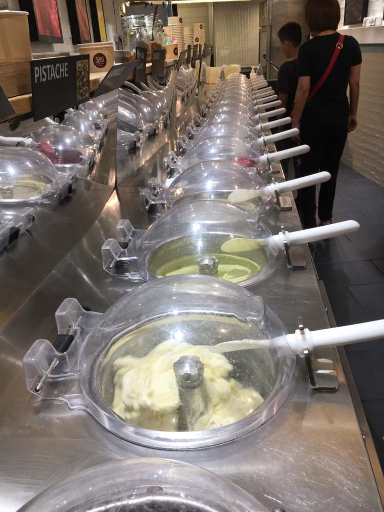 自称是“艺术化的Gelato",冰激淋上插着新鲜水果,有很多没见过的口味。比我试过的别家都口味浓郁。而且量很大,本以为是按球算的,实际是给你往死里堆。