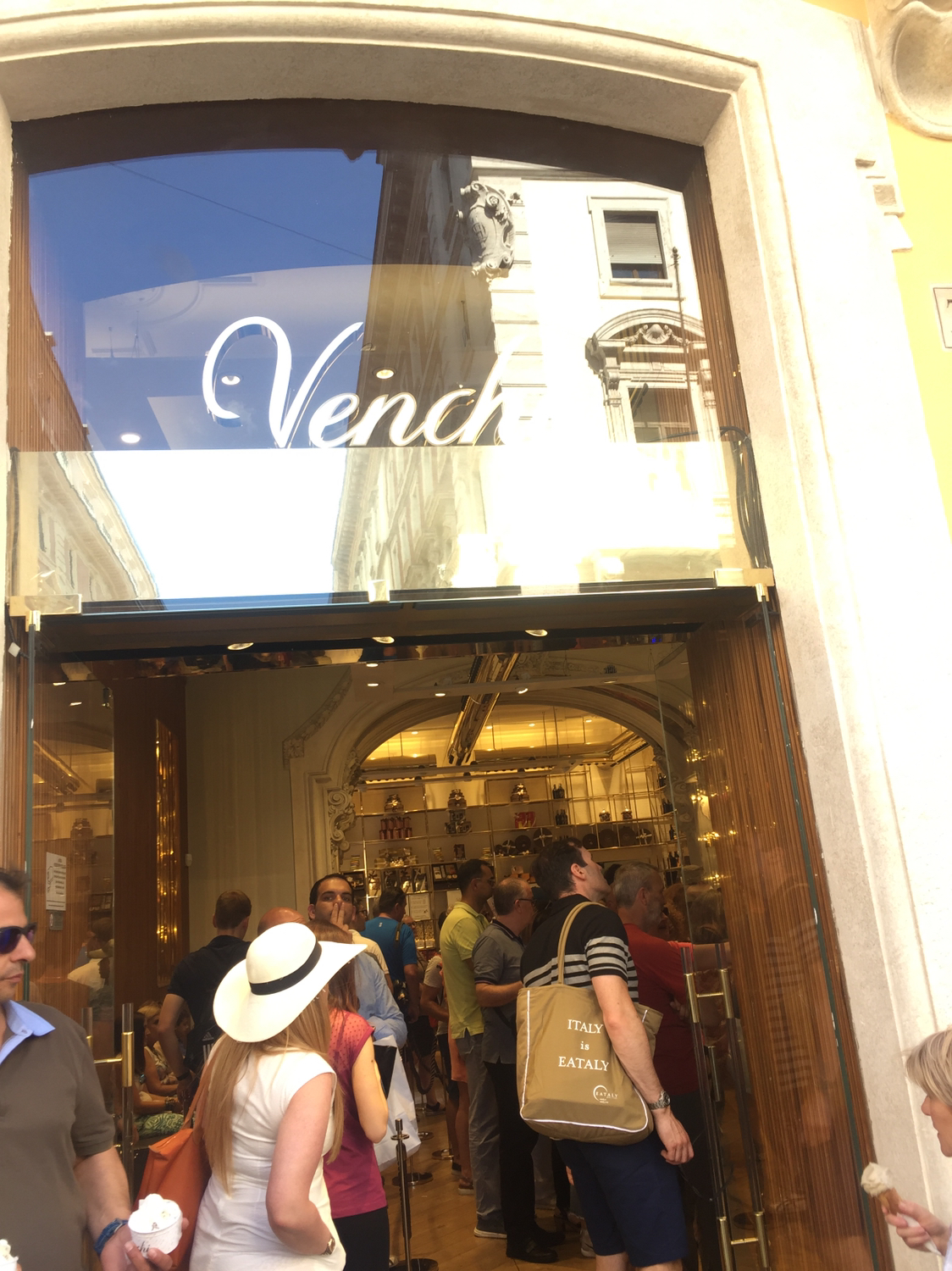 还有比较多店面的Venchi,他家是巧克力店,店面就是巧克力色,然后一半gelato一半儿巧克力,巧克力不错可以尝一下。