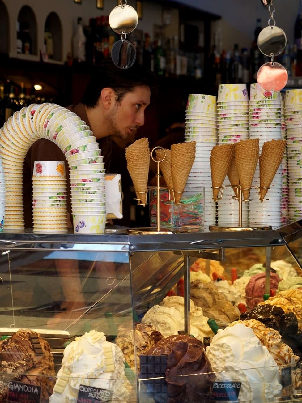 在意大利你和大叔说要买 ice cream ,大叔会非常不爽,因为意大利的冰激淋叫Gelato(杰拉托),在意大利人眼中是和 ice cream完全不同的两种东西,这是意大利的骄傲,绝对不能错过哦。Gelato分为两类:奶油类和水果类,奶油口味的醇厚甜腻,水果口味的清爽,最好搭配来吃。2欧一个球,3欧两个球,4欧三个球。
