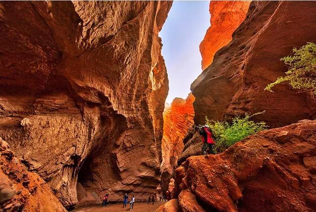 神秘大峡谷这里不是美国大峡谷确也红的犹如一簇簇燃烧的火崖壁嶙峋如刀割奇峰怪石、色彩斑斓的雅丹地貌