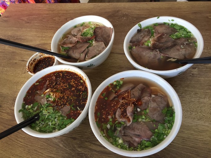 等我真的到了兰州,到了西宁,才发现我错了,而且大错特错,正统的兰州牛肉面是牛羊骨清汤为底,弹性韧劲十足的面条为面,而且配以羊脂白玉般的萝卜片,豪气地铺满肉片,在撒上一把青翠的蒜叶,滋溜一口面配一小口生蒜,欲罢不能,好吃到爆炸,以致于在整个大环的12天,每天至少要刷一碗以上,并且等回到上海后还得了后遗症,本帮面再也抓不住我的胃,去回族饭店吃牛肉面时必备生蒜,忍受着临桌阿姨爷叔嫌弃的嘟囔:噢哟,生大蒜阿切得渥起,啧啧啧~