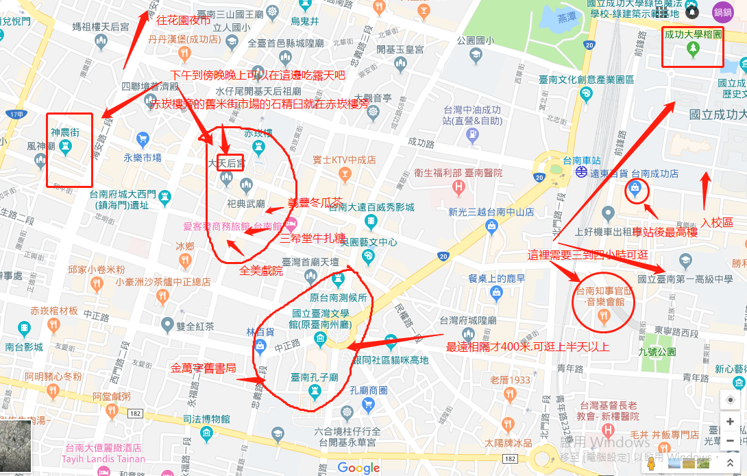 我自己最少最少會玩三天兩夜!我不喜歡時間太壅擠~~~老實說即使三天兩夜行程也是走不完的不過總是要留點遺憾下次才有動力來呀!說到吃當然要去「永樂市場」朝聖啦!蚵仔煎、春捲、虱目魚湯、牛肉湯、肉圓在這都找得到,非常方便的。如果要想去夜市「花園夜市」是最有名的夜市!好吃好玩一應俱全!另外我也推薦「...显示全部
