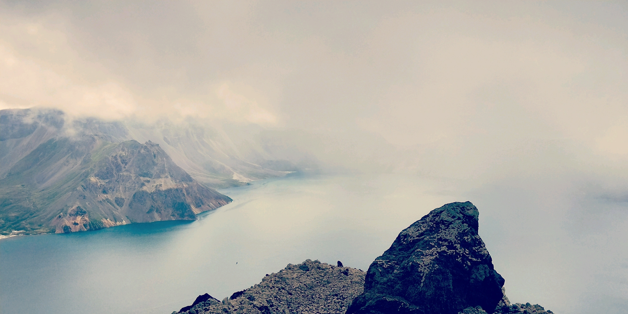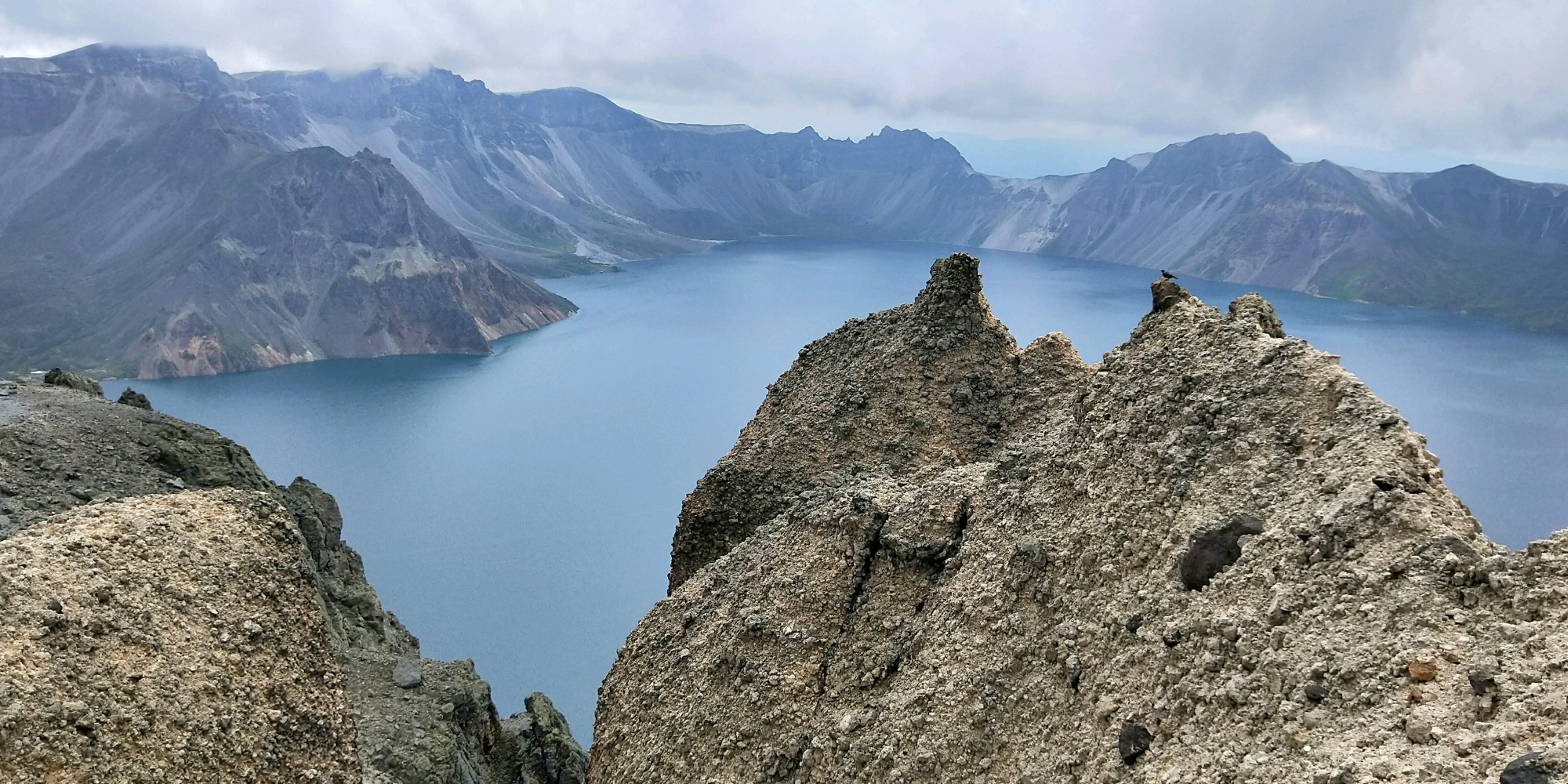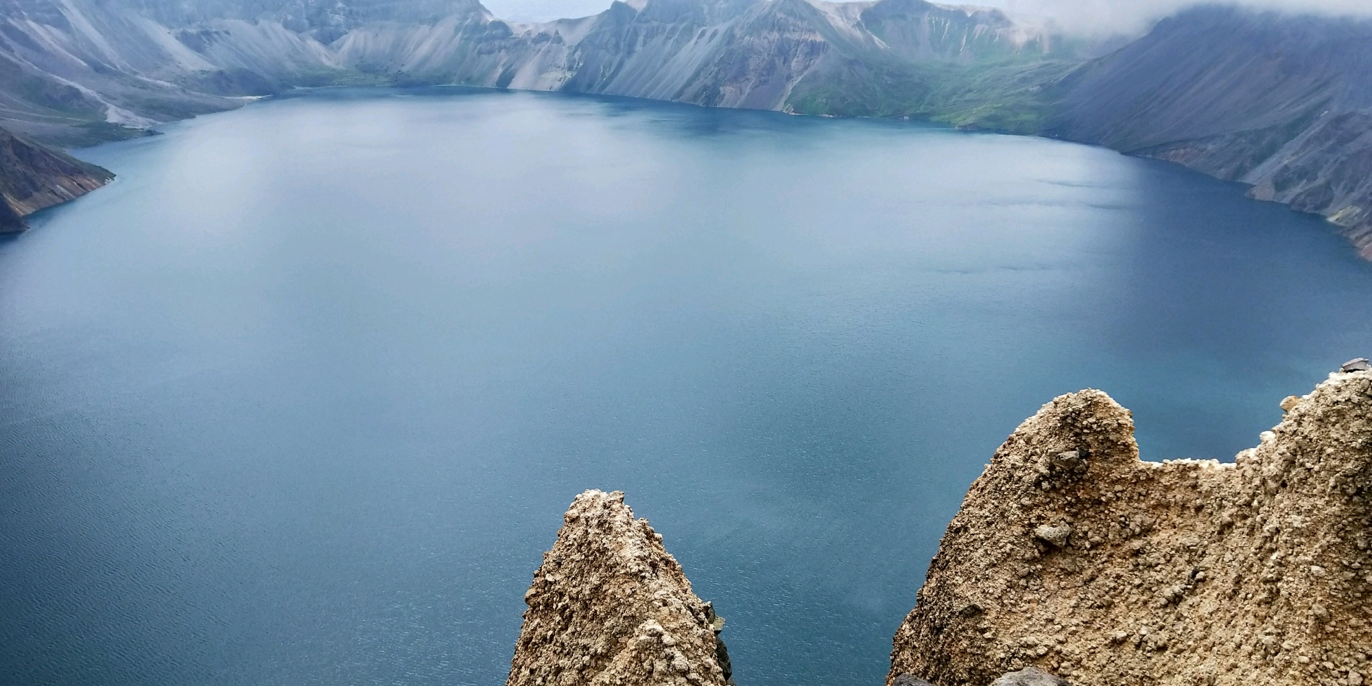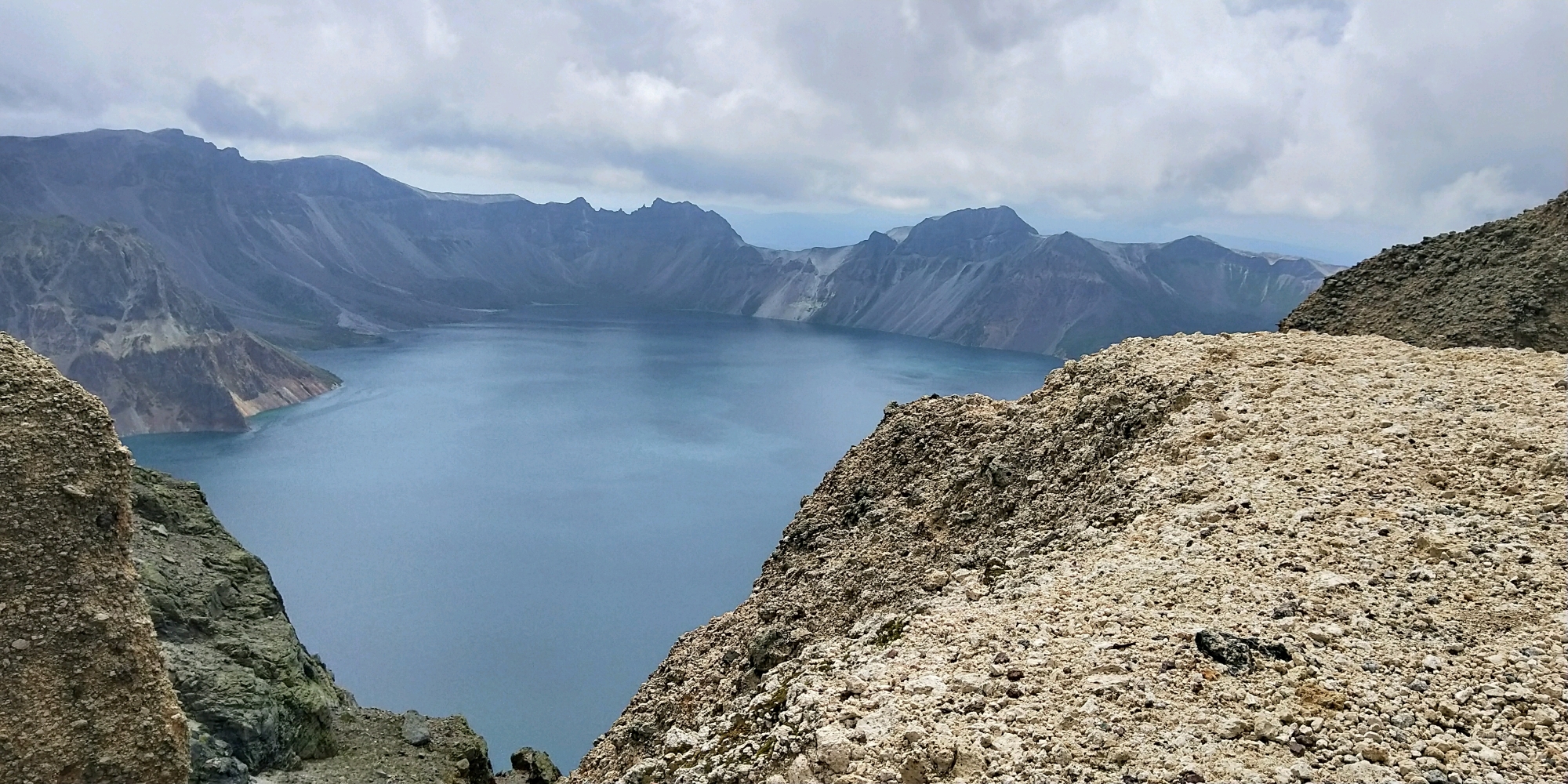 长白山天池,北坡陡峭险峻,西坡委婉秀丽,南坡磅礴大气。