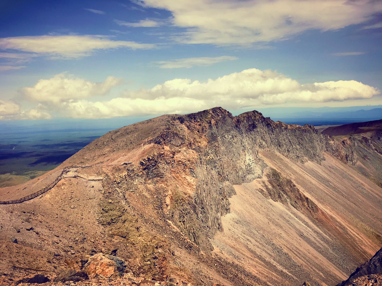 过了喘气坡,就是老虎背。它也曾是徒步登山观赏天池的必经之路。山形似卧虎。蛇形小路即在虎背之上,而山路两侧则为斜坡和断崖,十分奇险。