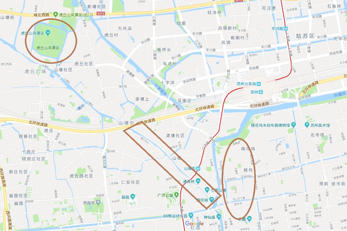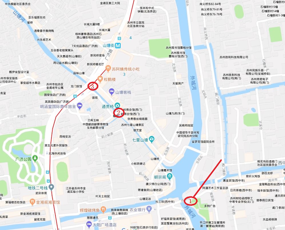 下图中位置1是以前的阊门一级附近的阊门横街