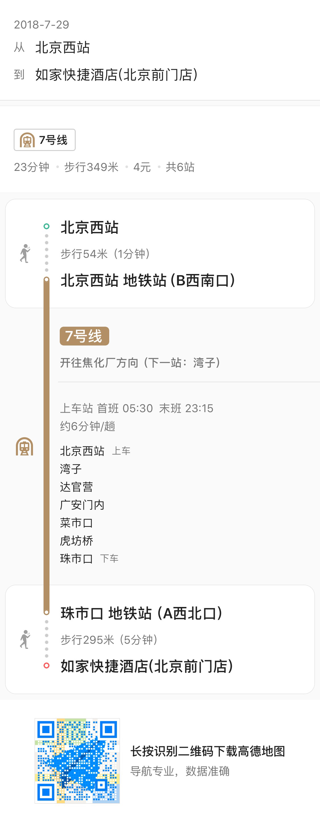 北京西站到前门坐地铁即可到达,坐7号线到菜市口换乘4号线,而后到宣武门换乘2号线到前门下即可,而后根据地图指引往如家去即可~希望回答对你有用~========== 如果你觉得TA的回答不错,快来给TA点个赞吧! 你的支持是对作者莫大的鼓励~显示全部