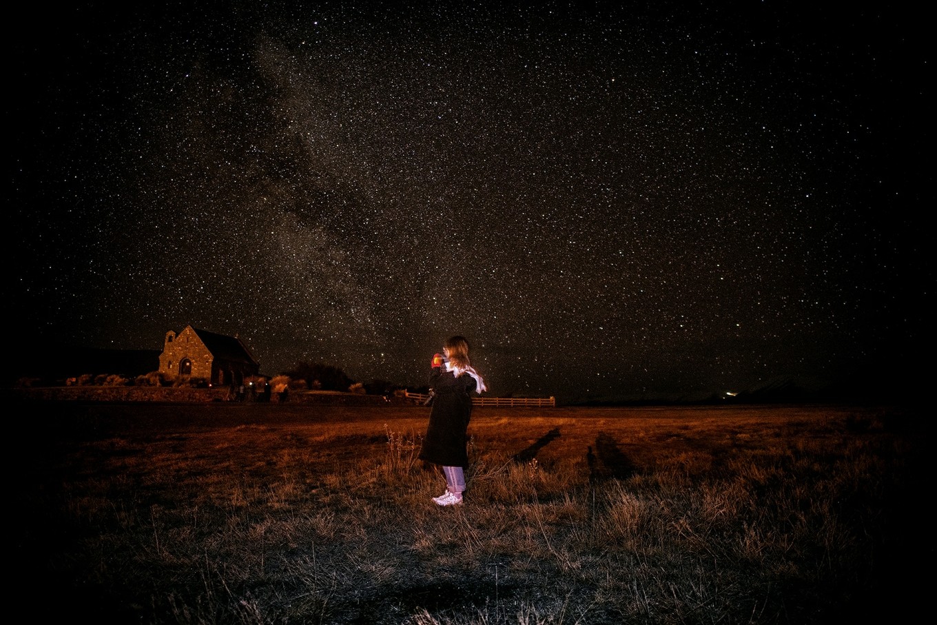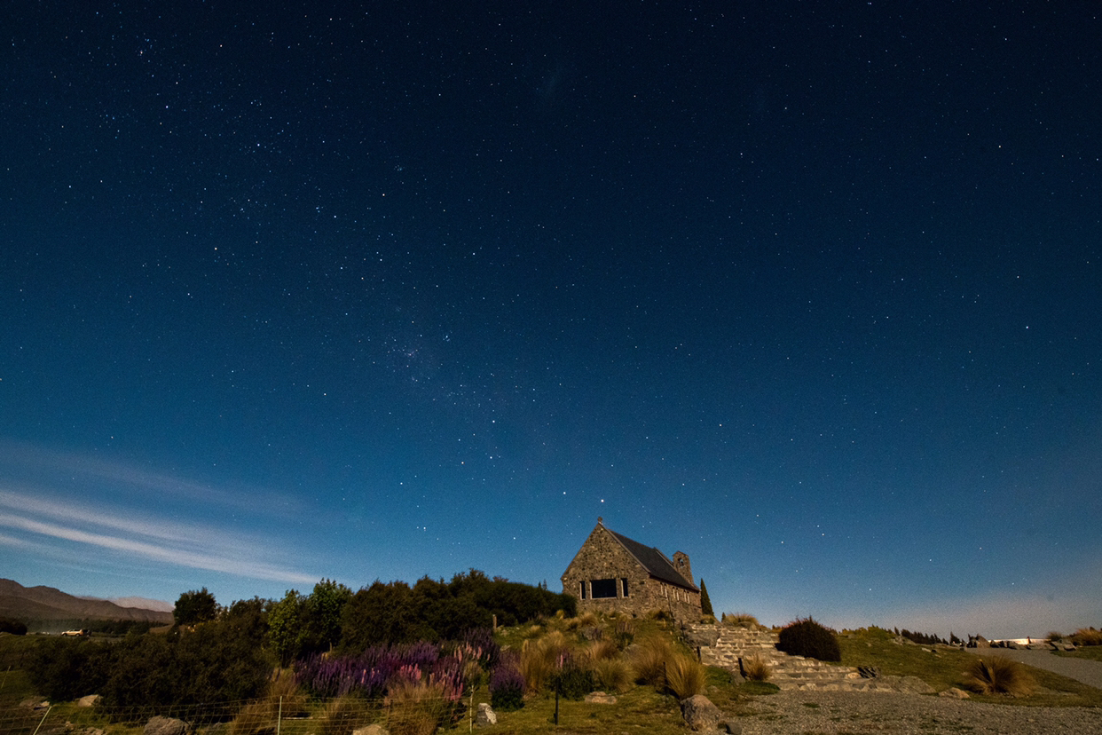 为什么这里的星空照这么有名?因为蒂卡波湖和约翰山所在的地区,2012年成立了国际黑暗天空保护区(International Dark Sky Reserve),这些类似的保护区,全球一共也只有10处,中国的阿里地区也有一个。在这里入夜之后是因为没有任何光污染的,所以这里也是地球上欣赏夜空的几个最佳地点之一。