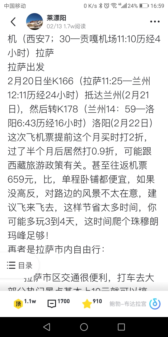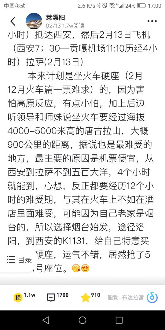 做卧铺有时候都比较难受,有一段海拔太高,时间太长,可以看我的游记第一篇文章,中间写的很详细,如果机票价格合适,建议飞行!还有我准备下周去,时间合适,可以一起!
