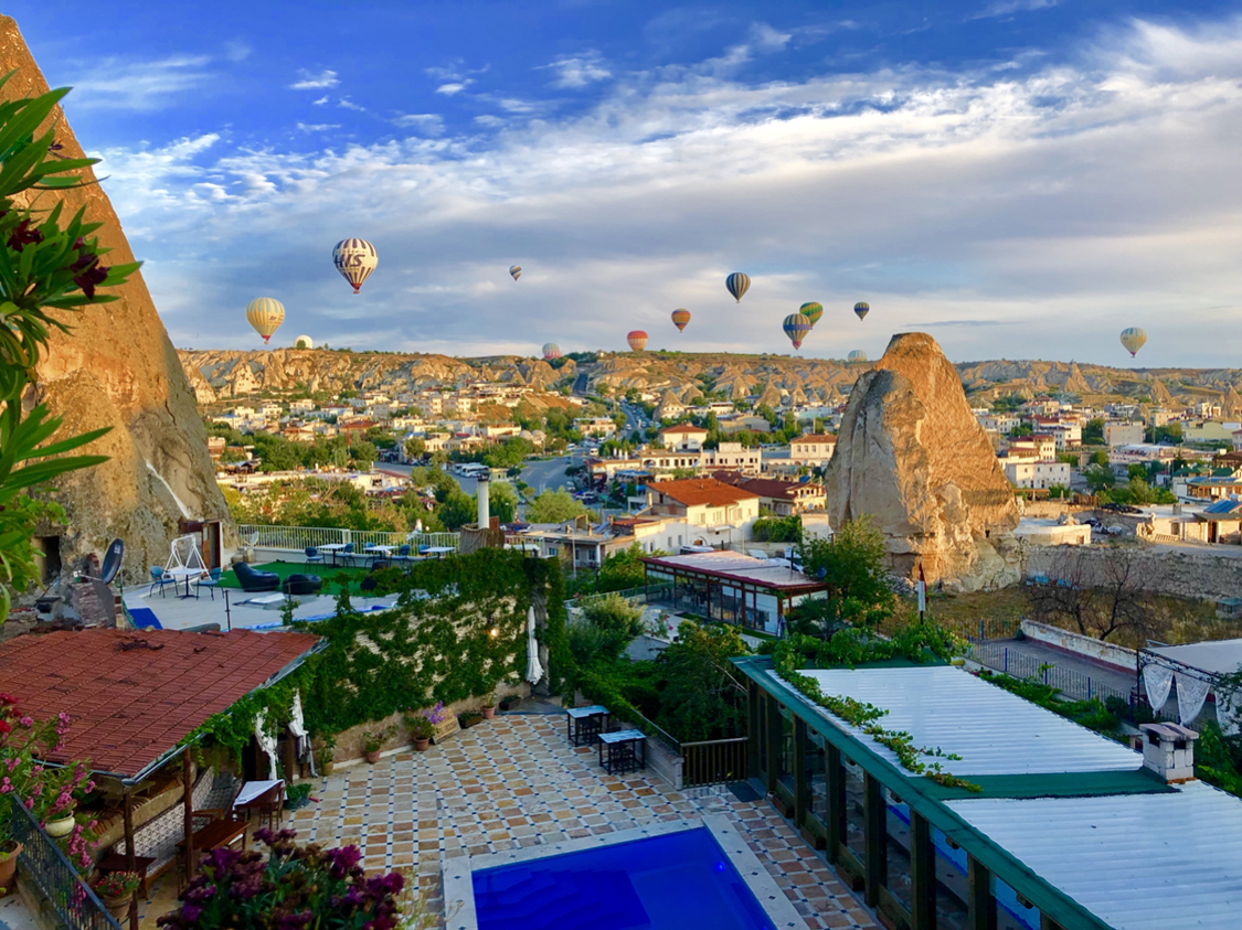 一定要选择一间自己喜欢的洞穴酒店体验一晚。酒店一般都会有景观露台,每天清晨可以在露台上观看上百颗热气球从山谷里随着日出缓缓升起的浪漫景色,这可能就是歌词里唱的“带你去浪漫的