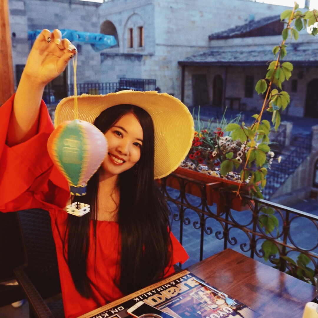 酒店的露台会布置得非常漂亮,有民族风图纹的地毯和抱枕,还有新鲜的早餐、水果,在这样美丽的场景中拍几张与热气球的合影,是一段无比美好的回忆。