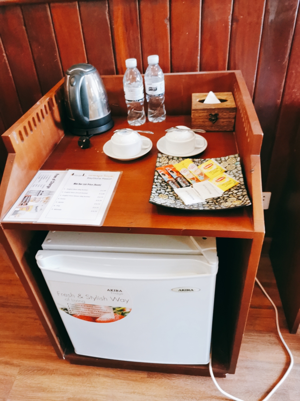 可能很多人有个误区,“境外人不喝热水” 。其实不管在暹粒、金边、西哈努克,还是在泰国、老挝等等这类东南亚国家,酒店都配有电热水壶。 在订酒店的时候,例如Booking,会有一个项目叫房间设施,里面有一个叫做“迷你吧” 其实这个迷你吧就是小冰箱、电热水壶、咖啡、茶包、矿泉水...显示全部