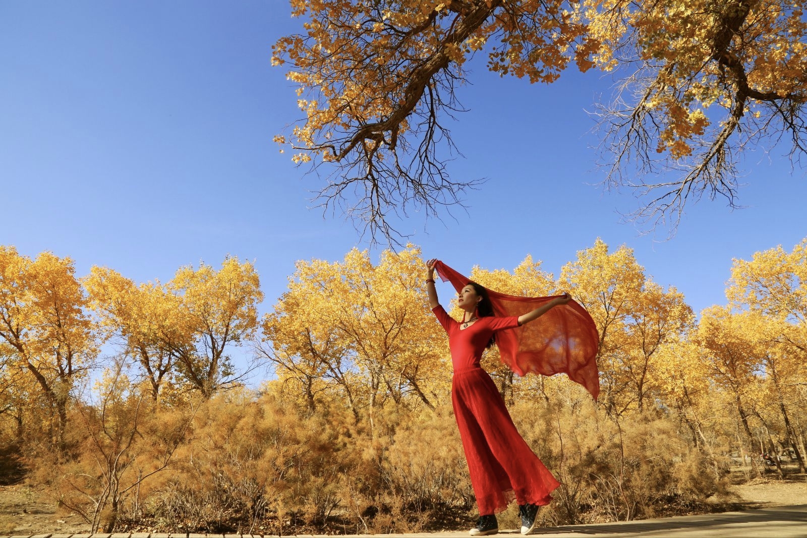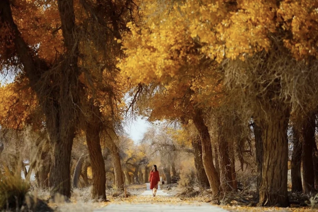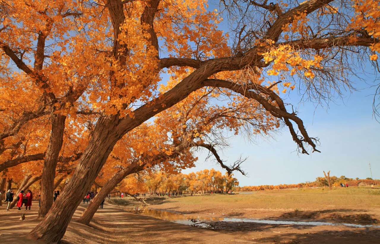 国庆期间人太多,可以考虑10-15号左右,依然能看到大片的金黄色胡杨林。