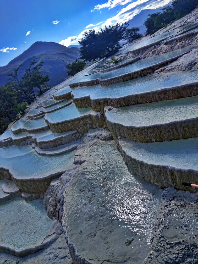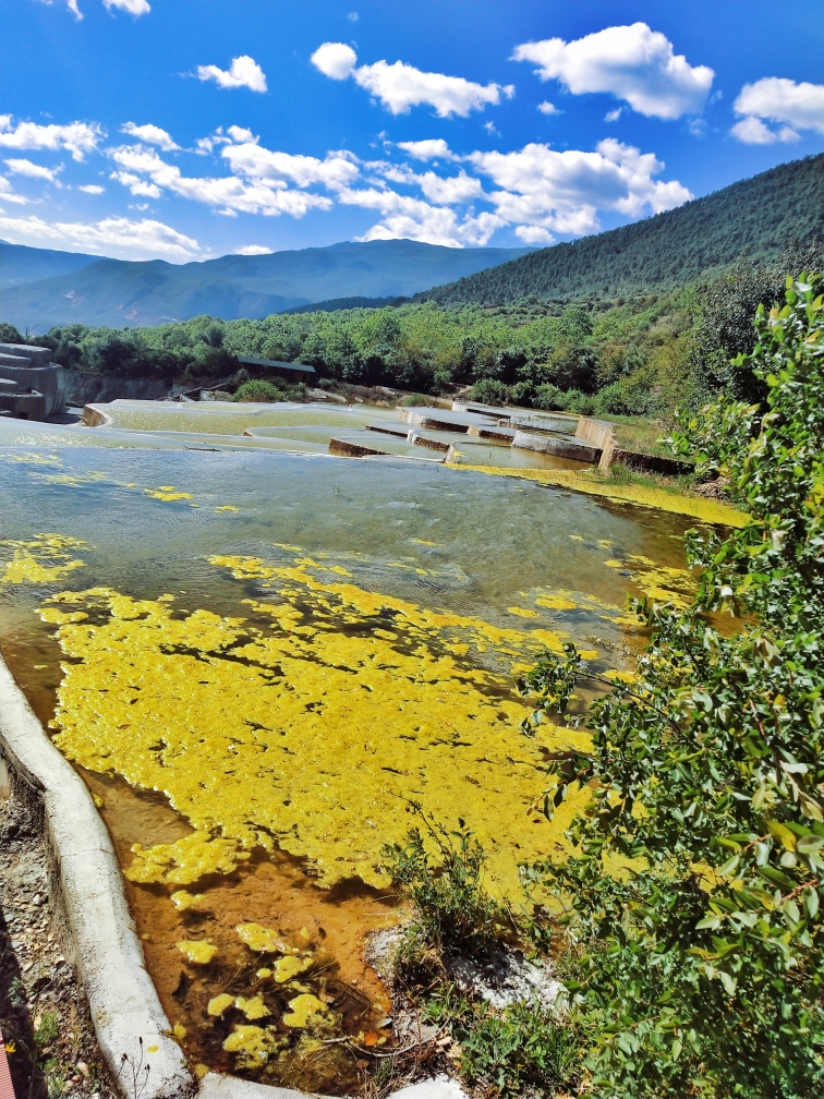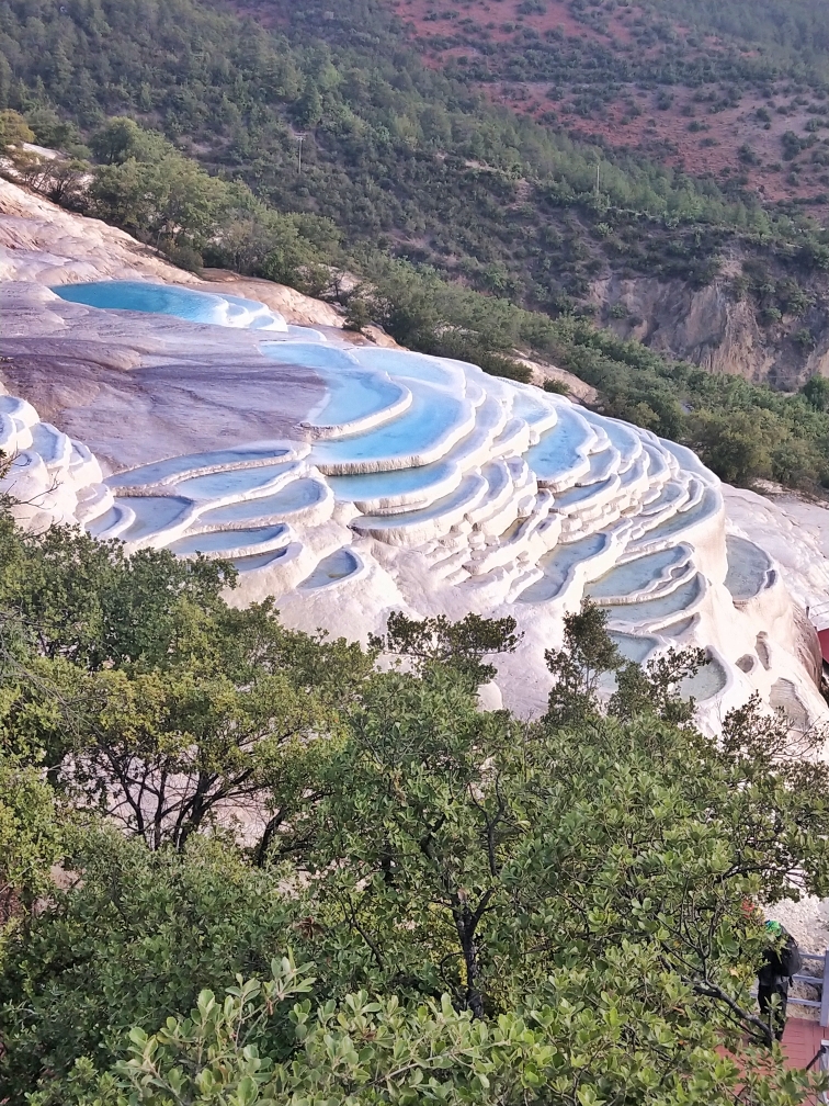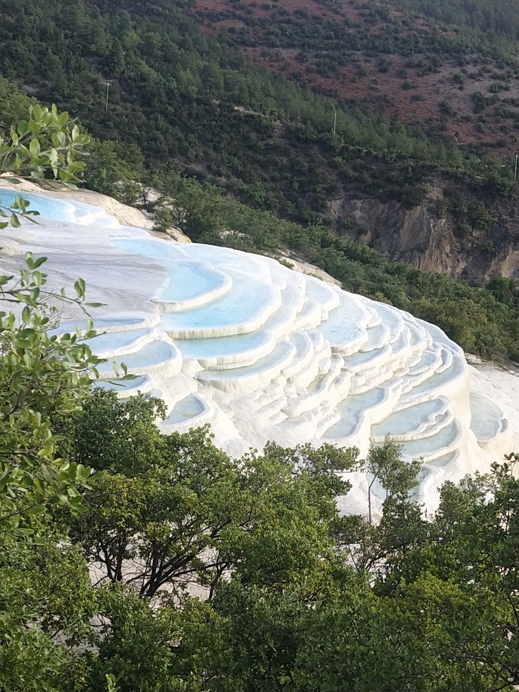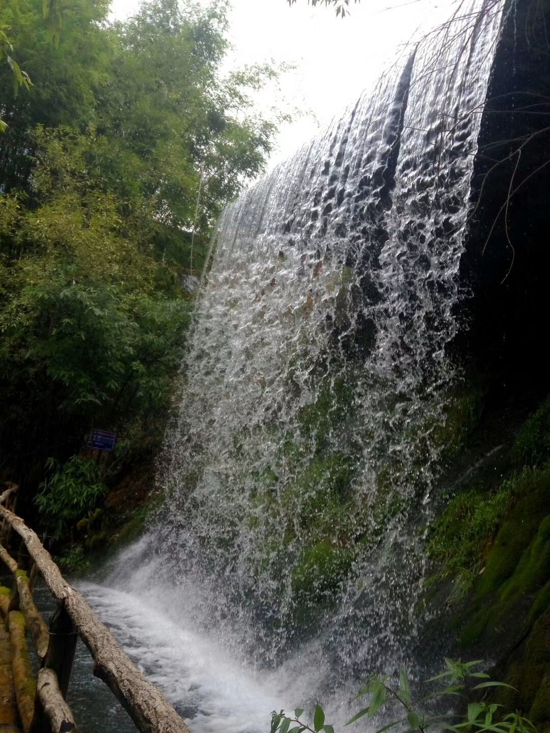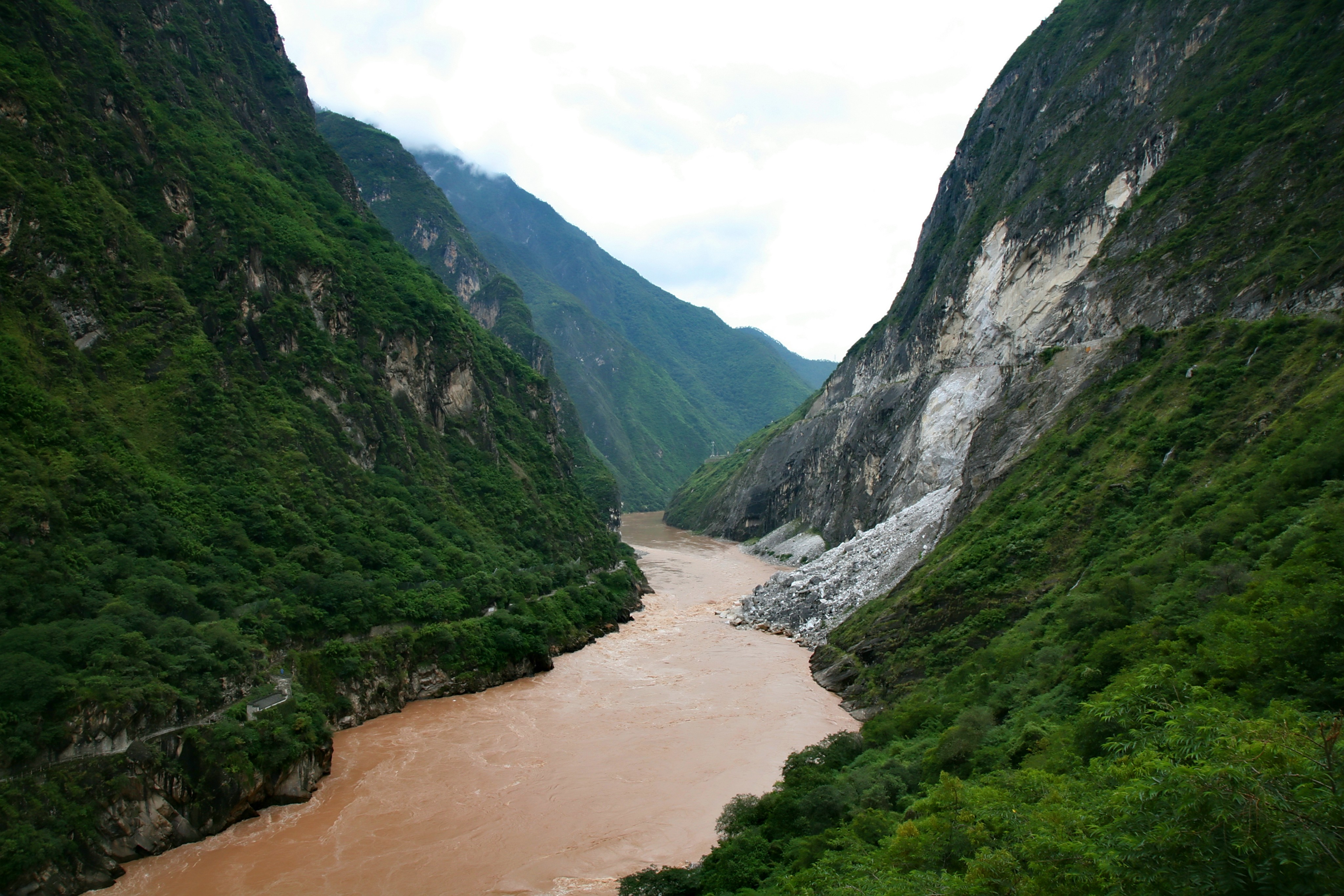 ,波涛汹涌,犹如万马奔腾,急流的江水从上而下冲击在虎跳石上飞起2米高的浪花,场景震憾而壮观,随后顺着弯的峡谷一泻千里。