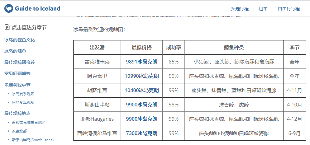 在胡萨维克看见鲸鱼的几率非常非常高,而且一年中有很长时间都可以去观鲸,Guide to Iceland的文章上面说再4-11月都可以在胡萨维克观鲸,如果这个期间去的话,千外不要错过:========== 如果你觉得TA的回答不错,快来给TA点个赞吧! 你的支持是对作者莫大的鼓励~显示全部