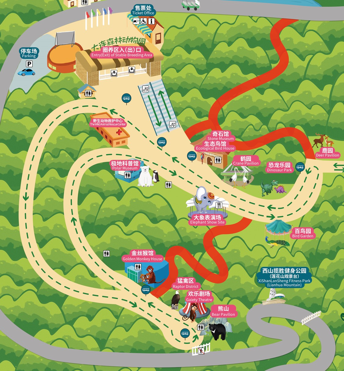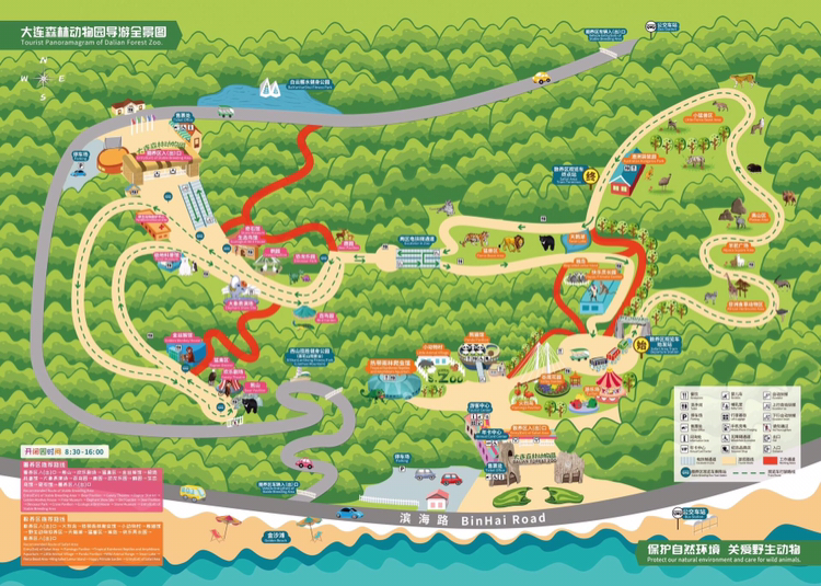 大连森林动物园非常大!一共分为散养区、圈养区两个区。如果带小孩子去的话,在园区门口有租的手推车。当然,以防万一还是带一个便携的更方便。如果时间比较紧,或者孩子比较小,不太能走路的话,建议以二期散养区为主即可。个人认为圈养区可看性不大。如果可以,办个年票分几次去,就可以玩的很尽兴了。下图是园区导...显示全部