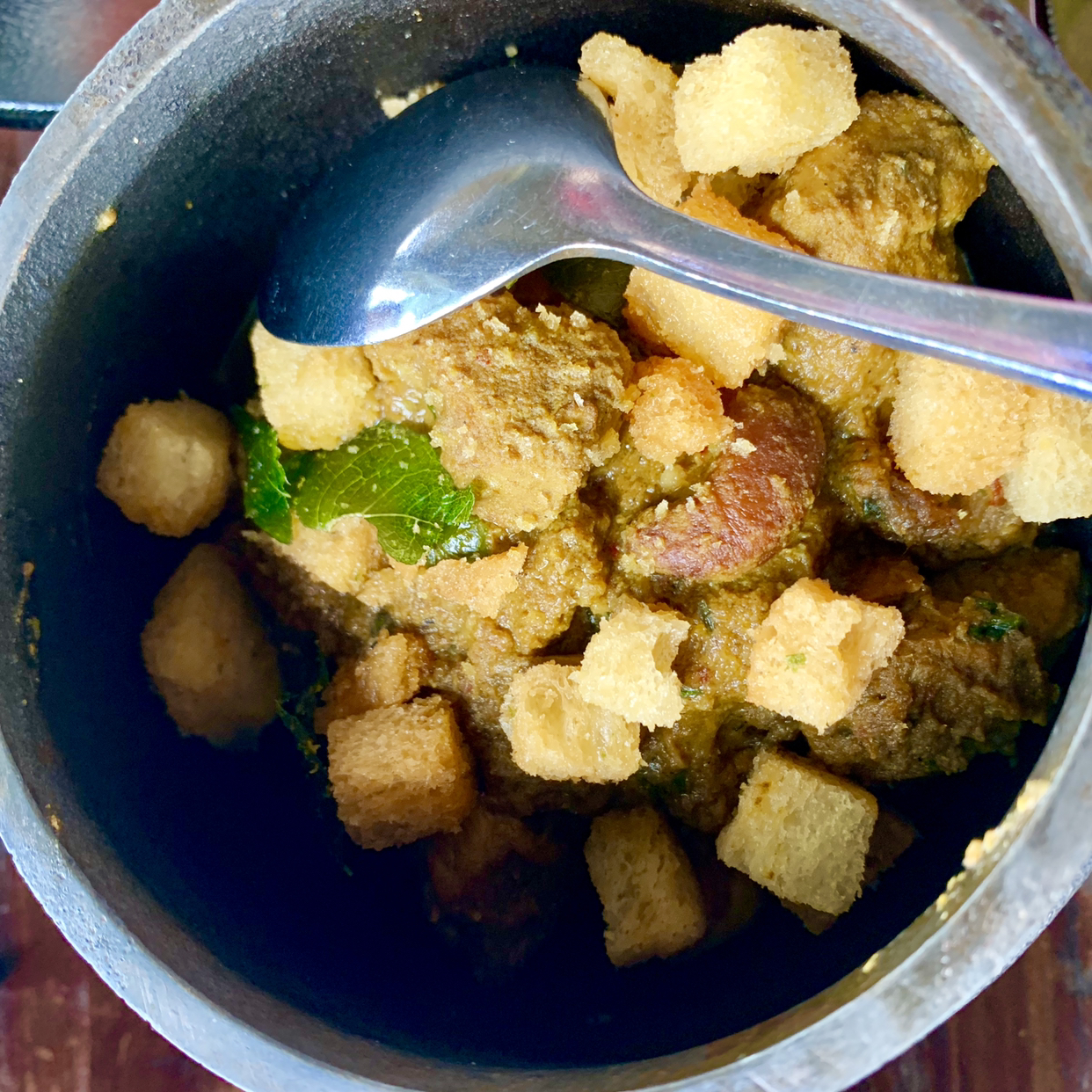 首先用餐环境没得说,一股浓浓的印度神秘的风情~服务人员热情有礼貌。印度菜的奇妙之处就在于那些多种多样的调料,每道菜的调料都不下10种,它们的繁杂几乎达到了“世界之最”,巧妙的排列组合造就了印度菜神秘而丰富的味道。我个人的感受,馕饼真的非常的香软,粘着香浓的咖喱酱,越吃越香!虽然看起来粘稠稠的,对待美食的时候,千万不要有偏见哦~(好吧,我心中的第一名永远是中国火锅!火锅永远无敌!)