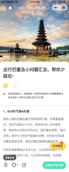 完全不用担心,我们国人都快把这里占领了推荐一个精华行程给你,巴厘岛精华五日游巴厘岛的玩法大多千篇一律,因箕盛名也通常被国人选做境外海岛游的第一站,自然是要提前做好功课的。要想充分享受海岛风情,度过一个美好假期,腐败是必不可少的。花费主要取决于住和行,几千到一两万都有,主要看怎么玩。如果想偷懒又...显示全部