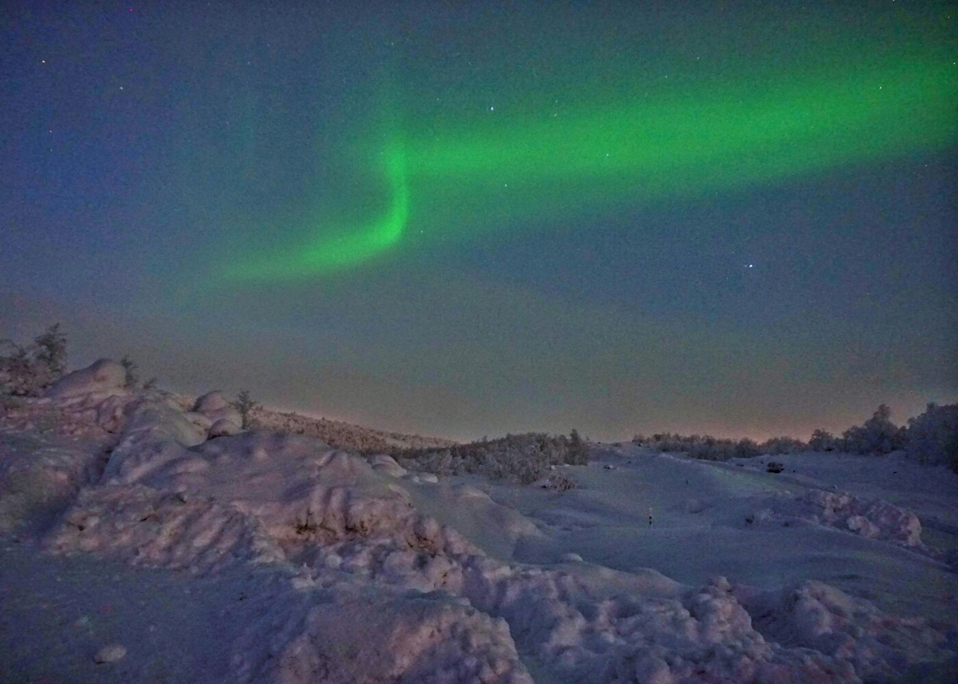 我今年2月在Teriberka追光,一共住了两个晚上,每天晚上都拍到了极光: