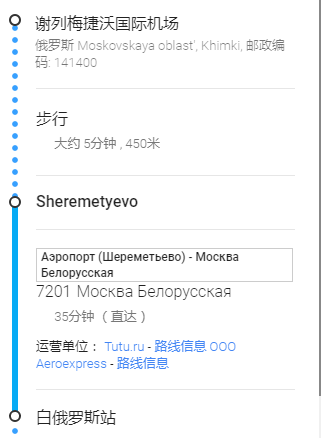 [题主采纳]可以从谢列蔑契娃机场搭乘aeroexpress前往白俄罗斯站。========== 如果你觉得TA的回答不错,快来给TA点个赞吧! 你的支持是对作者莫大的鼓励~显示全部