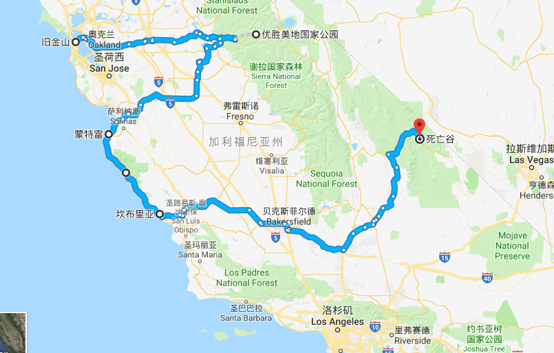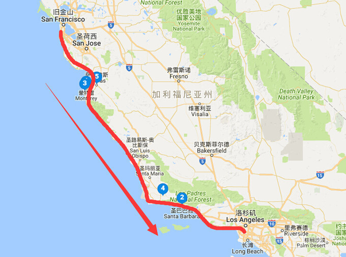 从旧金山出发,走一号公路,沿途都是非常美丽,有很大一段路比较曲折,狭窄。需要注意安全。