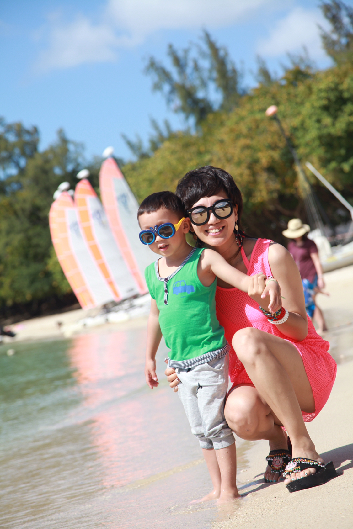 海滩顿时她俩变成了大家争相拍照,合影的对象,简直太可爱~老外也是心大,随便大家拍,自己站旁边看着,如果是国人,我想会心疼死了。。。