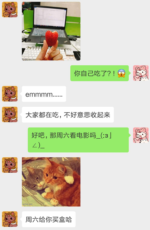 其实不过是一盒草莓而已啦,就算被当场吃掉,也太正常不过了~~只是我已经习惯于【他有任何觉得不错的东西都会带给我分享】,所以第一反应问出了这个问题~~问完之后才意识到,我已经完全被这个男人宠坏了哈哈哈!