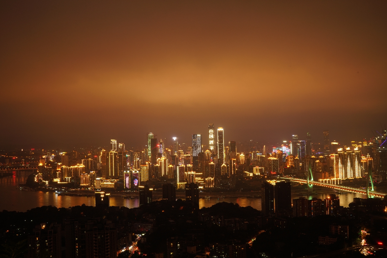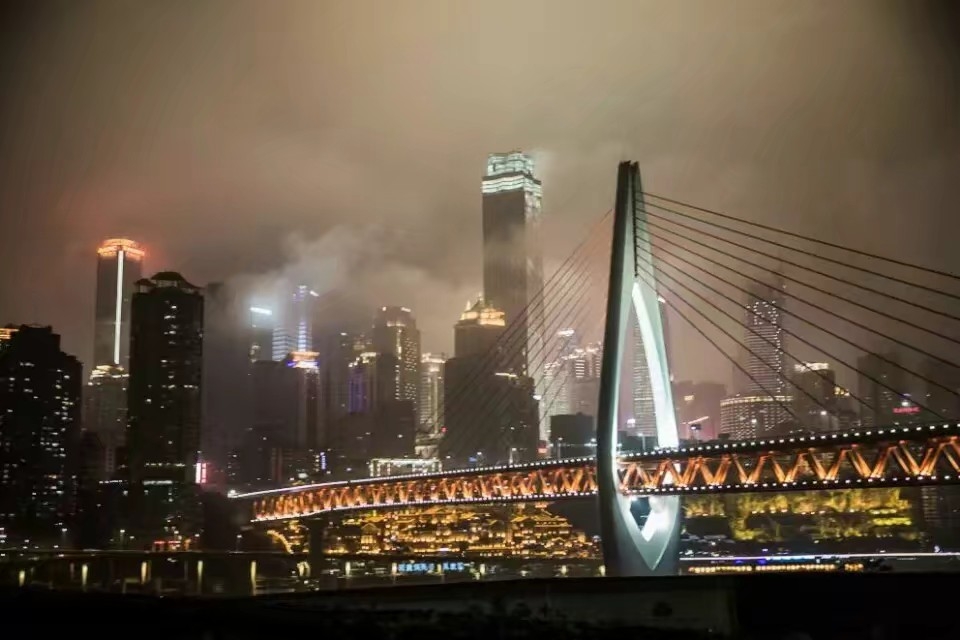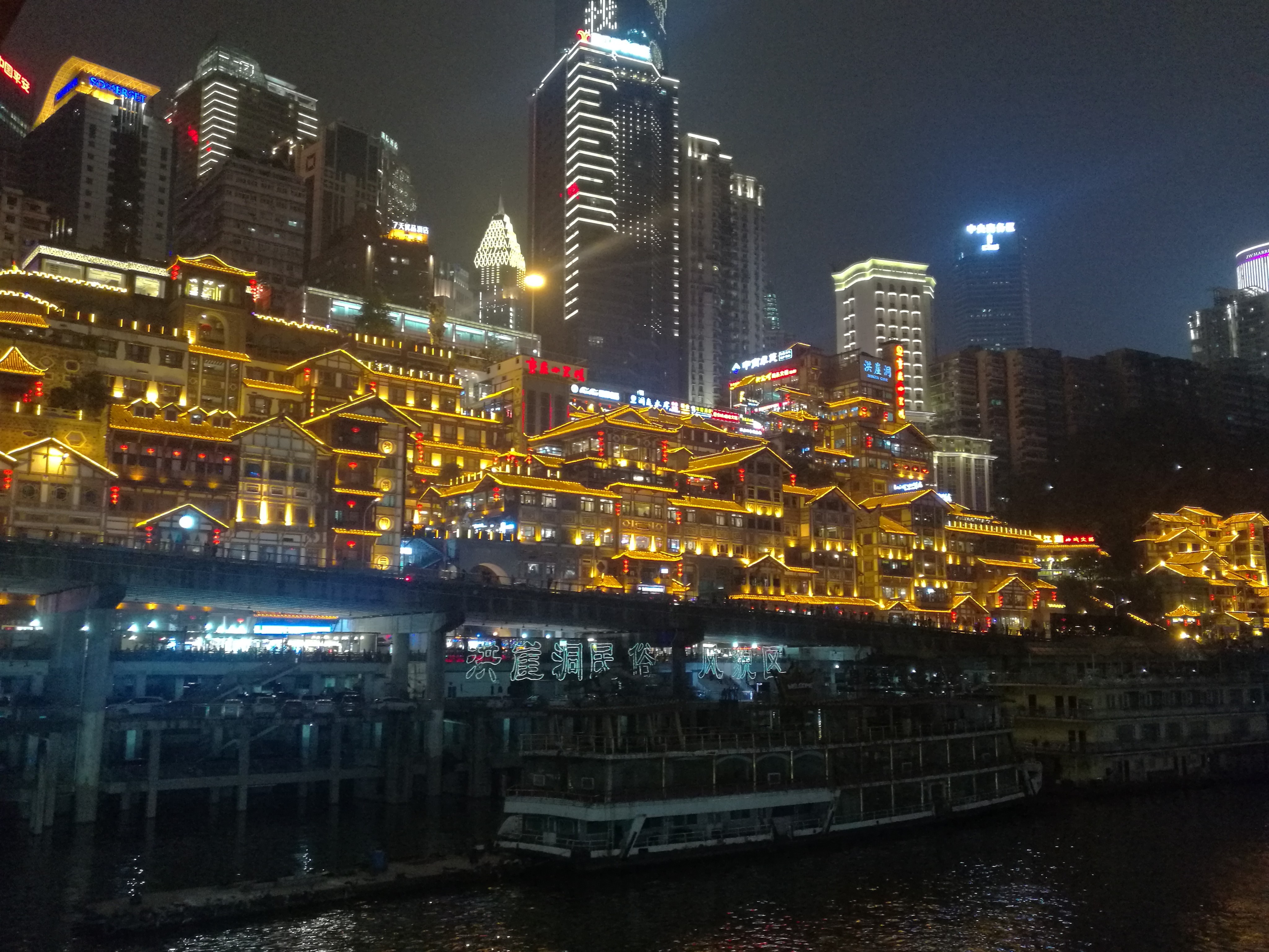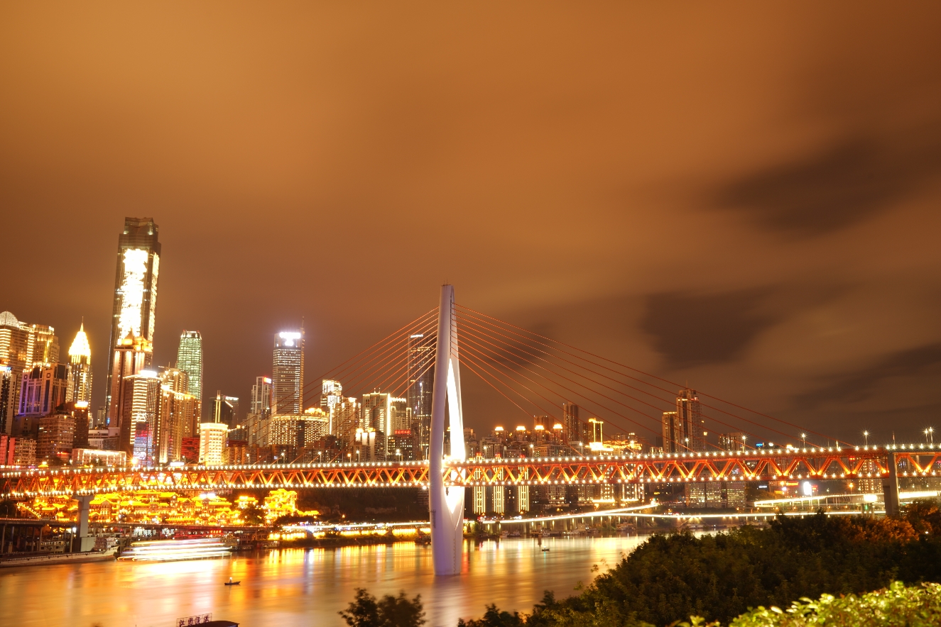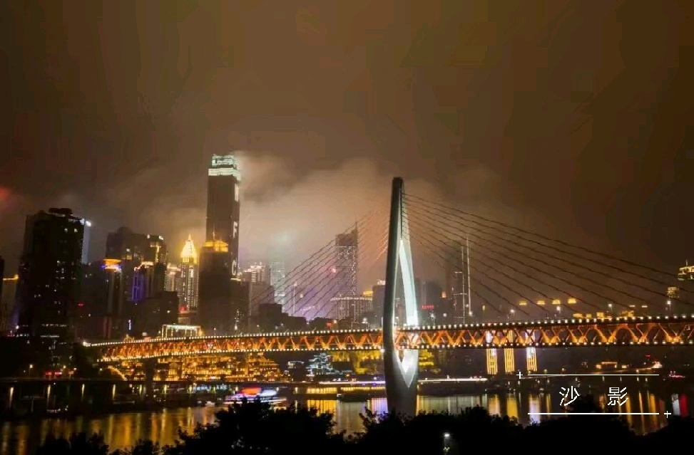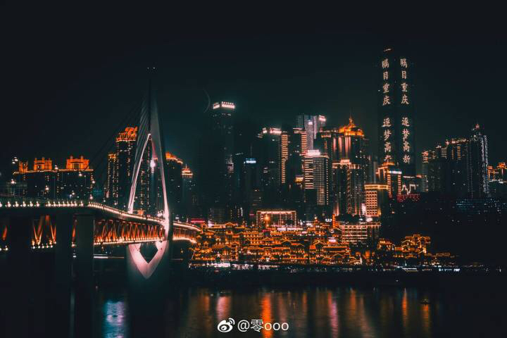 在桥上都还能听到洪崖洞的音乐吧里传来的歌声,眼前是一片灯火阑珊,空气中弥漫着醉人的夜味~