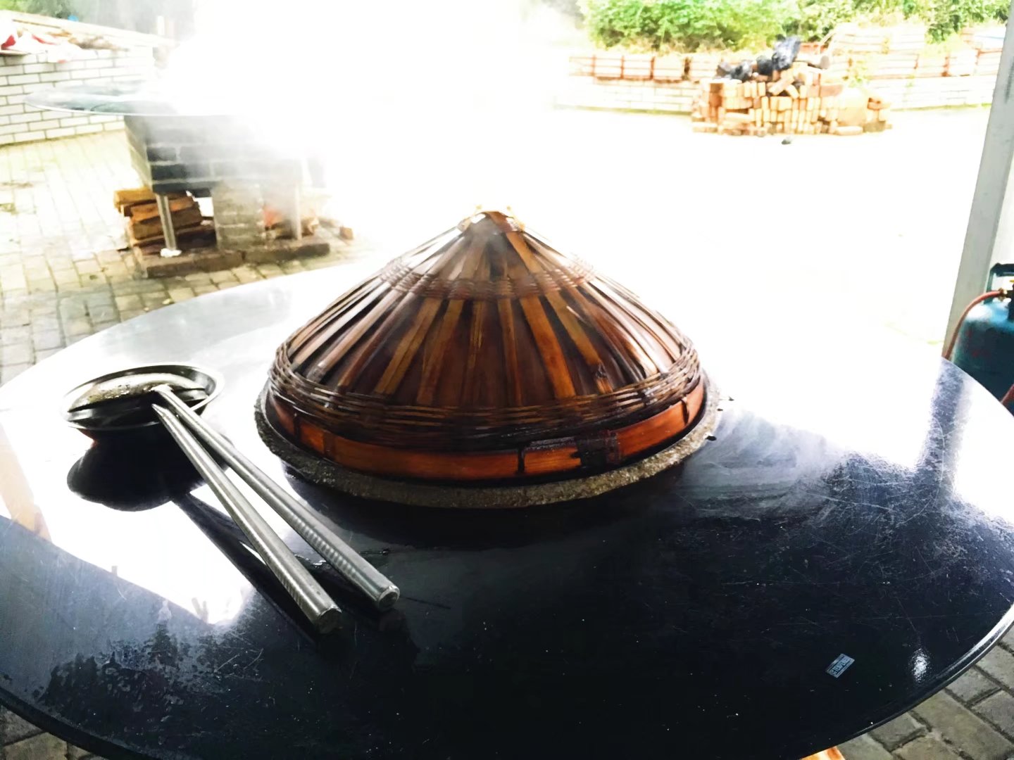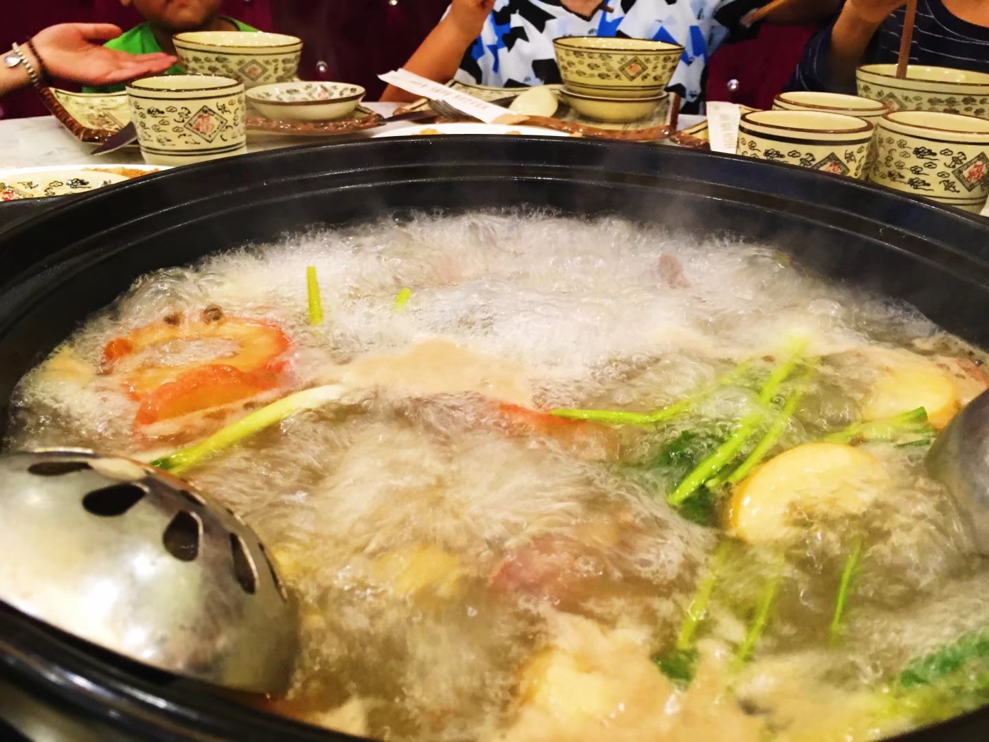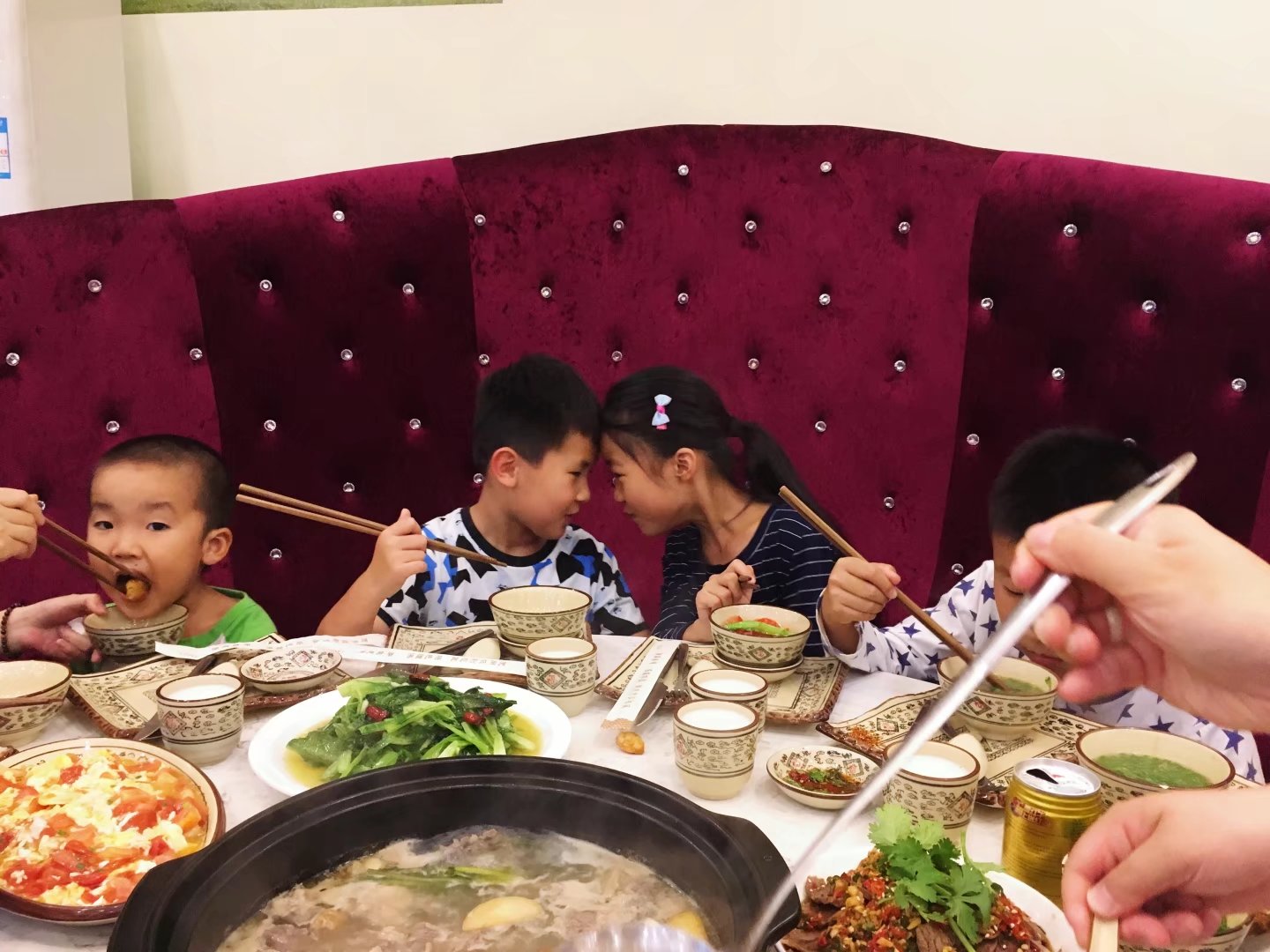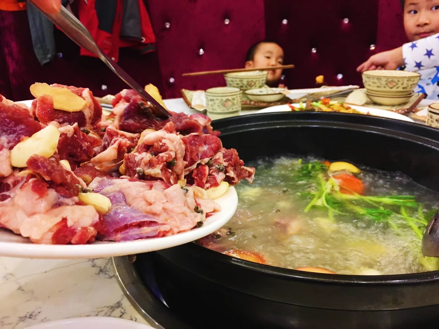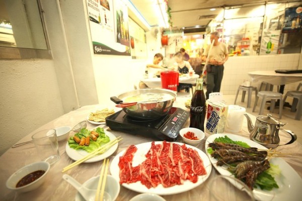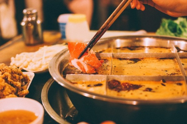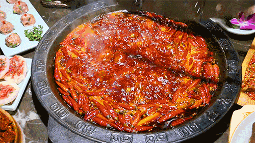 火锅:一个小小的铜锅,用铁格子分出九个小格子,每个格子涮不同的食物,烟气缭绕,五六个人围着这么一个炉子,哼哧哼哧的吃得热火朝天,筷子伸进格子里,夹出一块牛肚出来,冒着热气,低着辣油,也不闲烫,就往嘴里塞, 额头上冒着汗珠,却仍然无法放下手中的筷子。